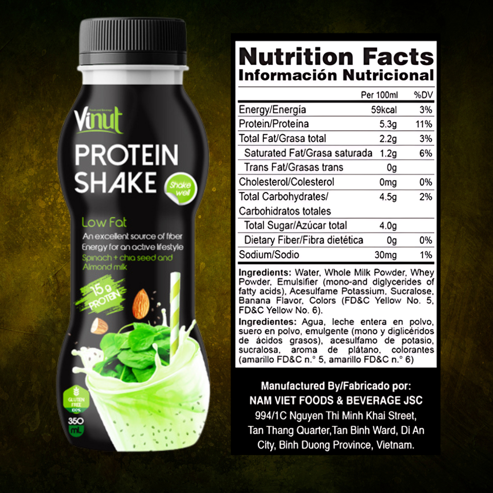 ผักโขมโปรตีนนมปั่น350มล. เวียดนามขายส่งราคาดีที่สุด15กรัมโปรตีน0กรัมตัวอย่างฟรีน้ำตาลฉลากส่วนตัว