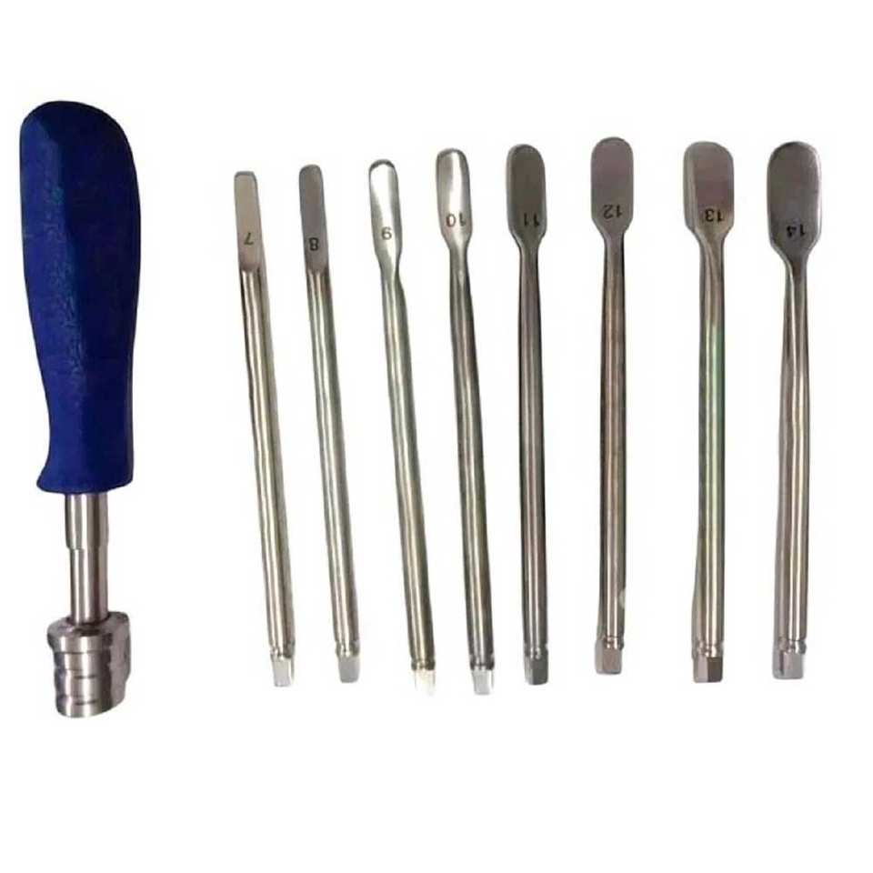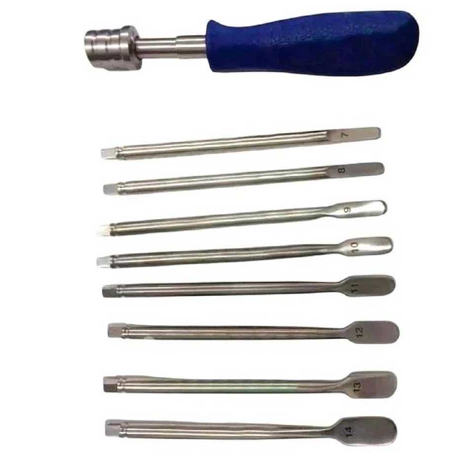 ชุดอุปกรณ์ดึงแผ่นดิสก์กระดูกสันหลัง (7 มม. และ 14 มม.) ชุดผ่าตัดกระดูกสัตว์แบบแมนนวล พร้อมด้ามจับแบบเชื่อมต่อ ได้รับการรับรองมาตรฐาน CE ใช้ซ้ำได้