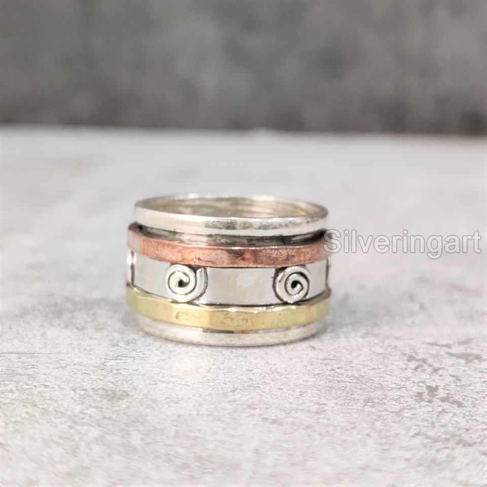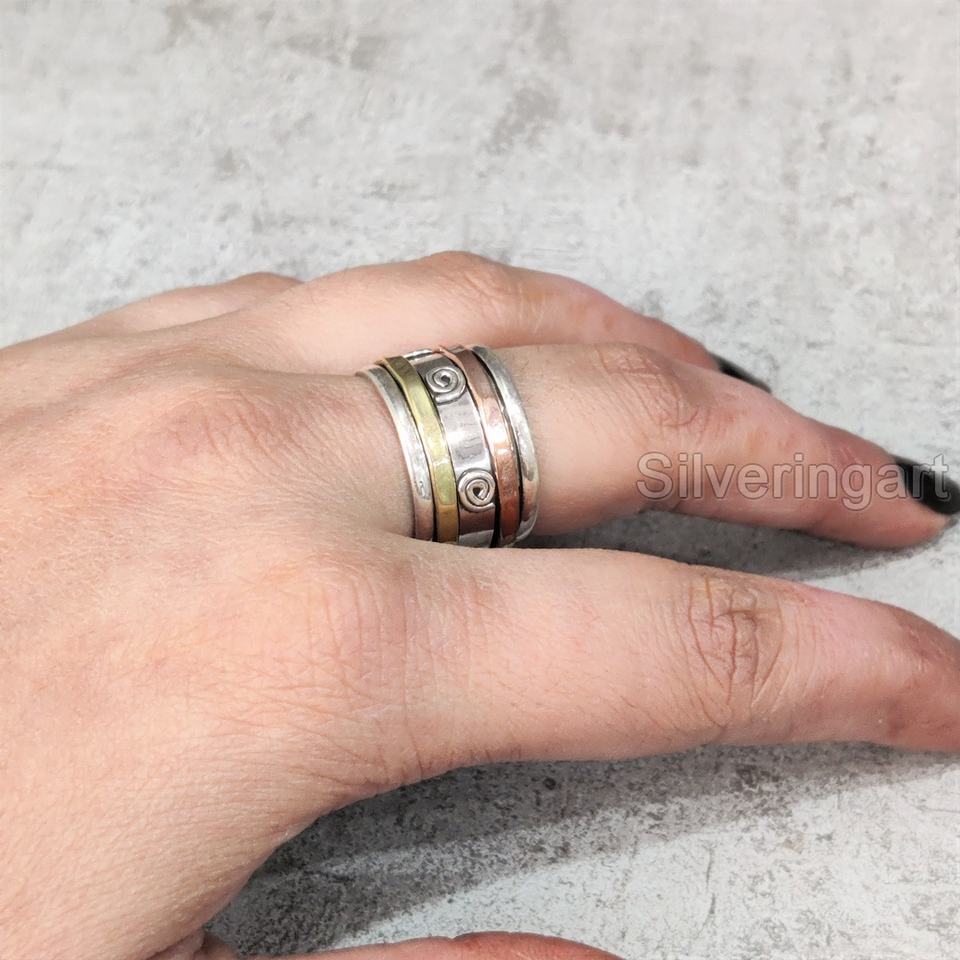 วงแหวนสปินเนอร์925แหวนนิ้วหัวแม่มือของผู้หญิงเงินแท้เครื่องประดับแฮนด์เมดคริสมาสต์แหวนสปินเนอร์สำหรับผู้ชาย