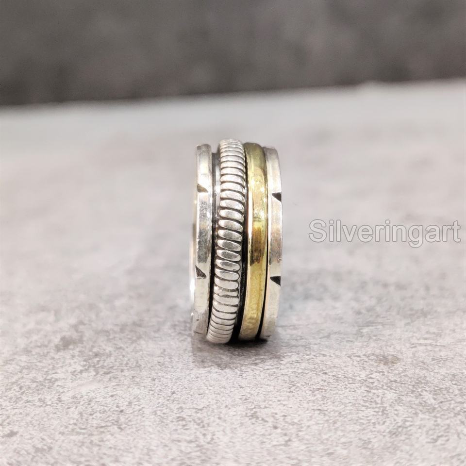 แหวนรูปสปินเนอร์925สำหรับผู้หญิงแหวนนิ้วโป้งทำด้วยมือเครื่องประดับคริสต์มาสแหวนสปินเนอร์สำหรับผู้ชาย