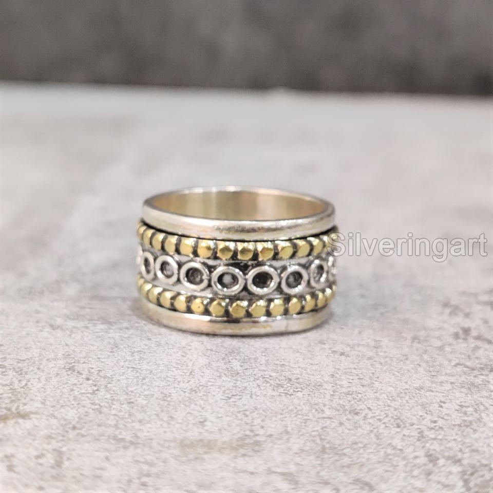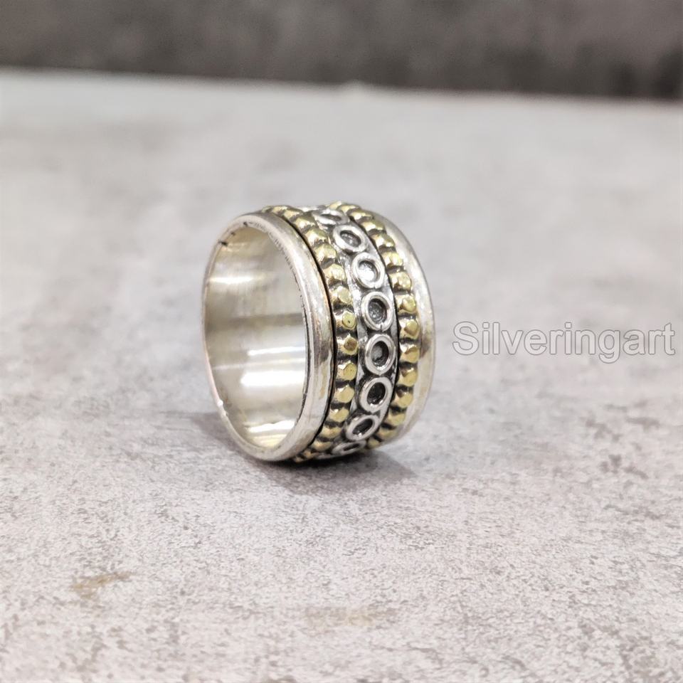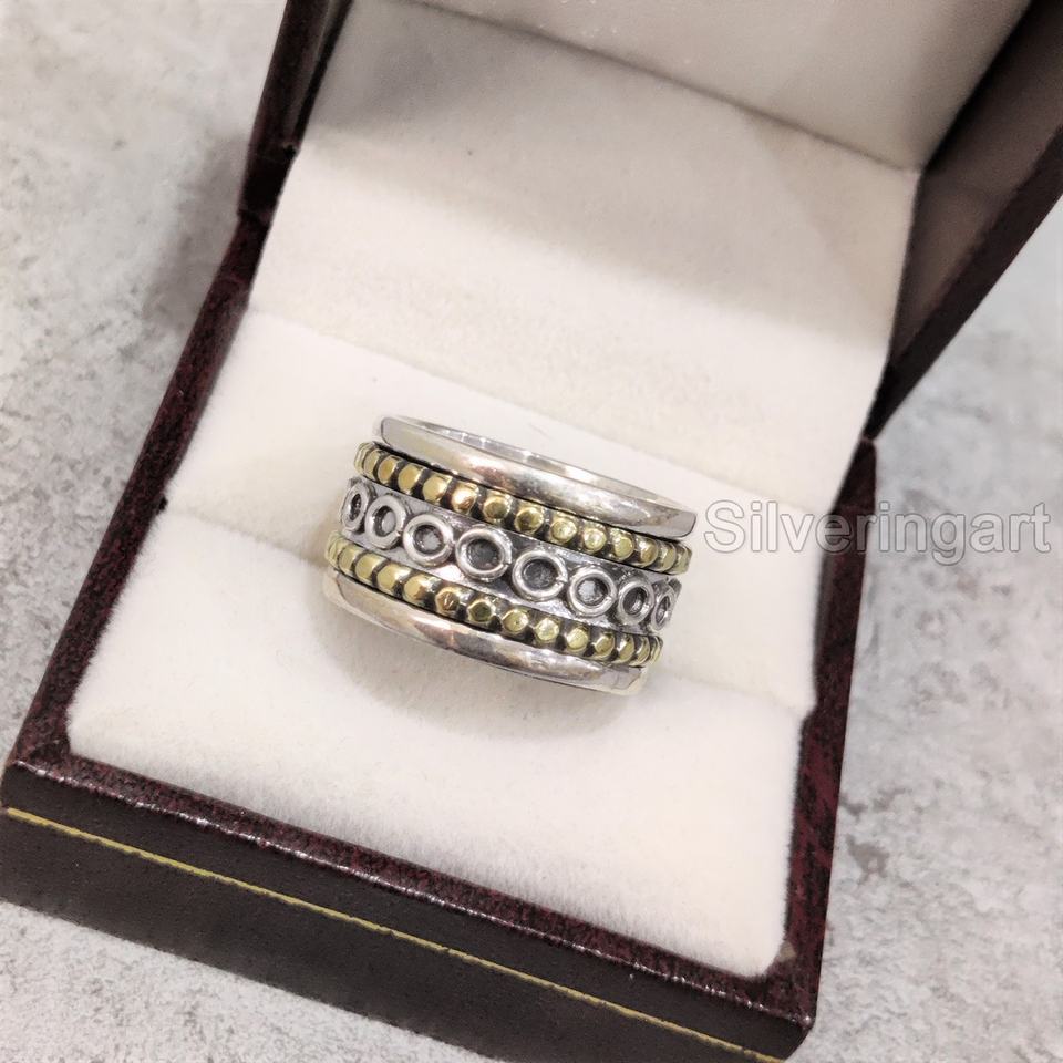 วงสปินเนอร์การทำสมาธิแหวน925เงินสเตอร์ลิงแหวนนิ้วหัวแม่มือของผู้หญิงเครื่องประดับโยคะแฮนด์เมดคริสต์มาสความวิตกกังวล unisex แหวน