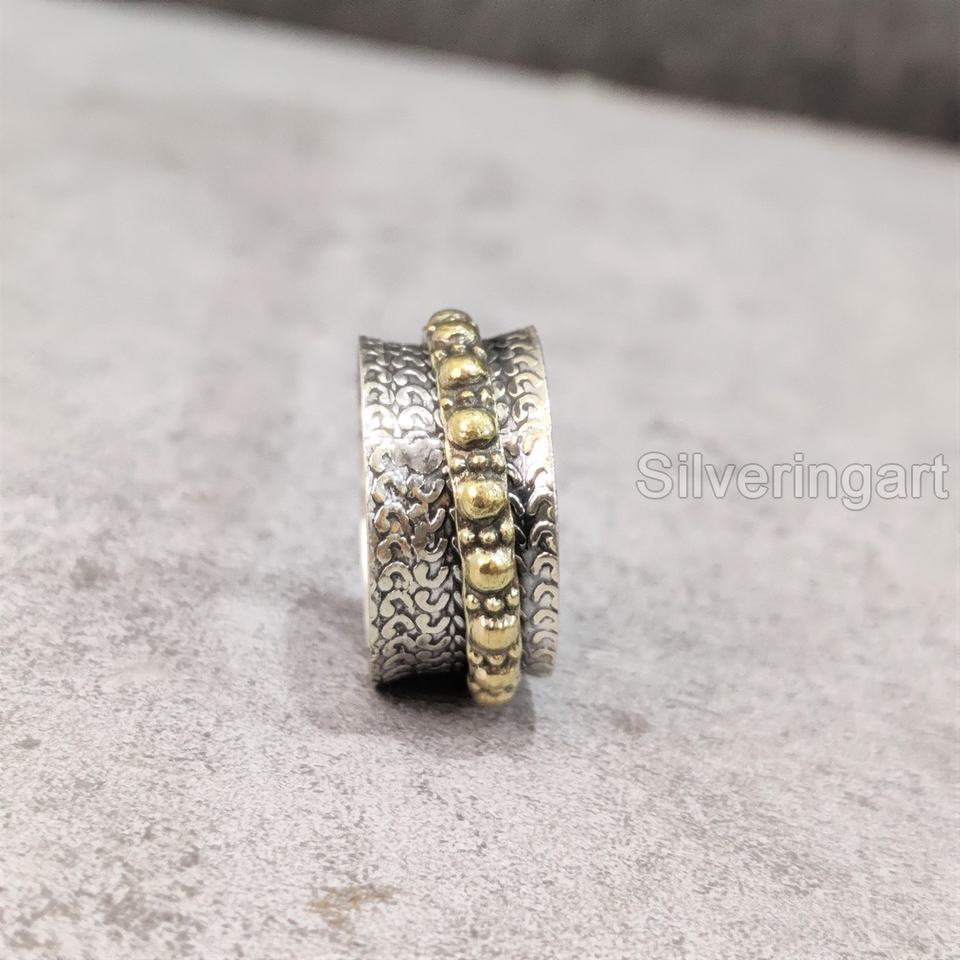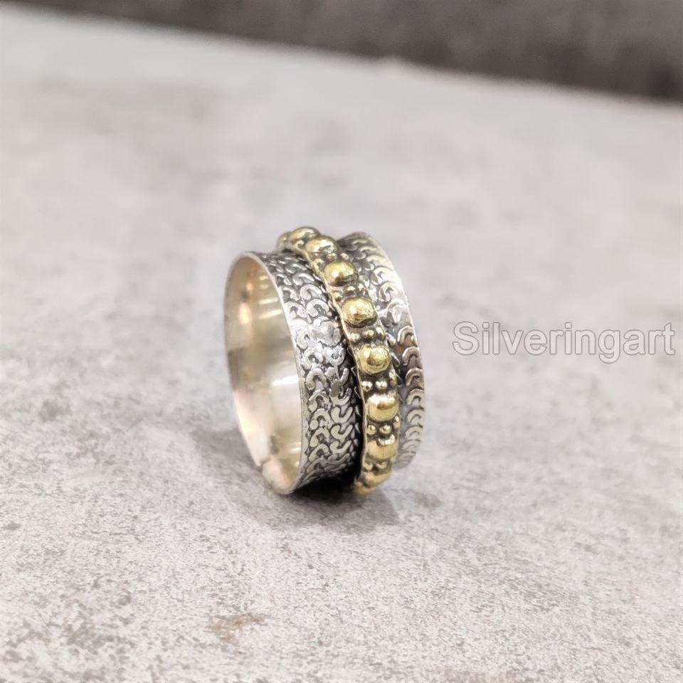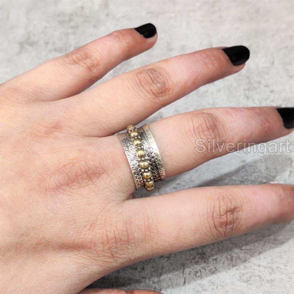 แหวนรูปสปินเนอร์925สำหรับผู้หญิงแหวนนิ้วโป้งทำด้วยมือเครื่องประดับคริสต์มาสแหวนสปินเนอร์สำหรับผู้ชาย