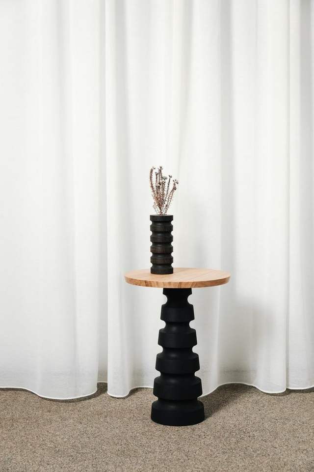 Spiral Black Mango Wood Side Table for Decoration, home, living room, hall, entry and office