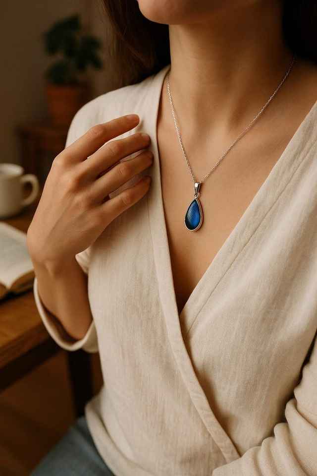 สร้อยคอลาบราดอไรต์ธรรมชาติทางจิตวิญญาณจี้เงินสแตนเลสที่มีเอกลักษณ์ในการรักษาของขวัญเครื่องประดับ