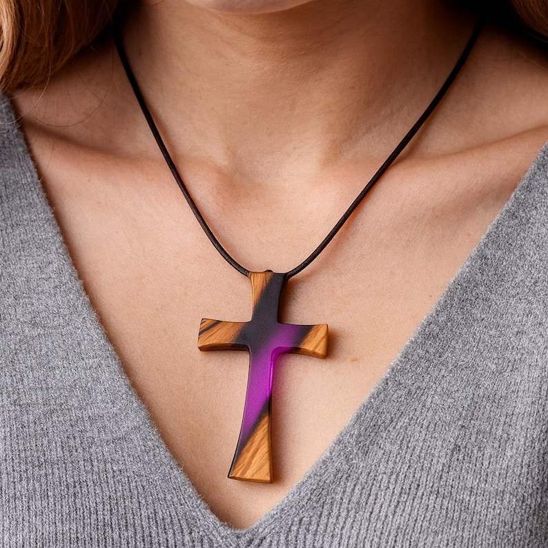 จี้สร้อยคอรูปทรงเรขาคณิตทำมือจากไม้แกะสลักและเรซิ่น รูปแบบแห่งความรัก งานศิลป์
