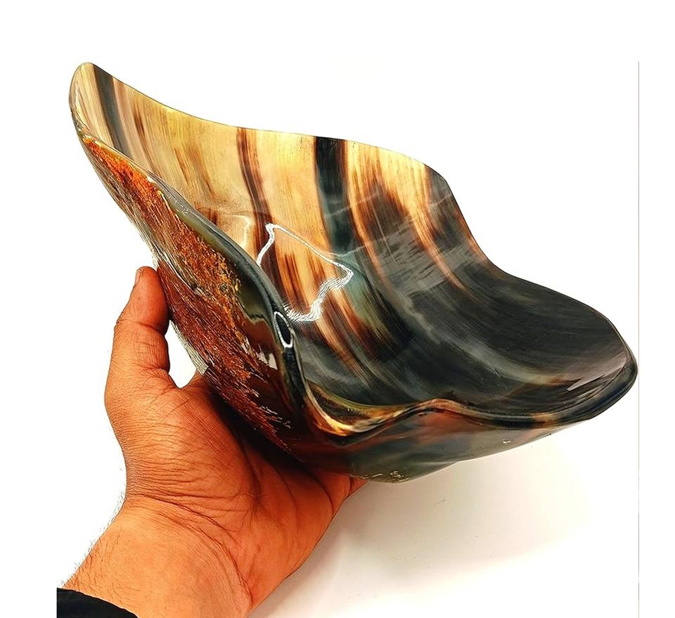 กระโถนกระเด็นจากช่างฝีมืออินเดียชามเขาควายตกแต่งอย่างแวววาวทำด้วยมือจากเขาสัตว์จริงธรรมชาติ