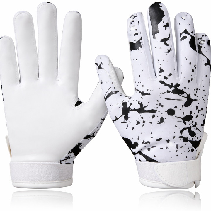 ถุงมือฟุตบอลแบบเต็มนิ้วลายสแปลตเตอร์ พร้อมพื้นผิวกันลื่น สำหรับการฝึกซ้อม การแข่งขัน โปรแกรมทีม และการผลิตแบบ OEM