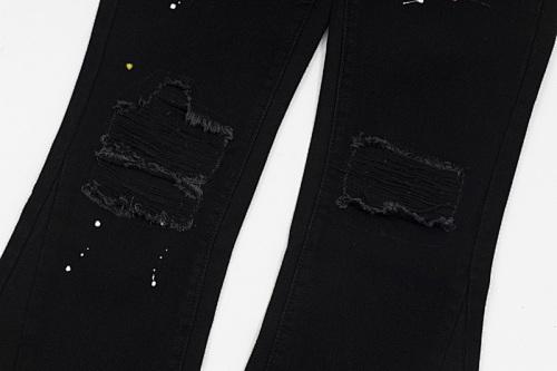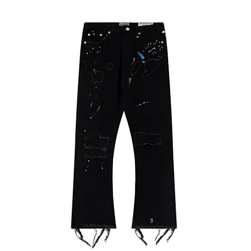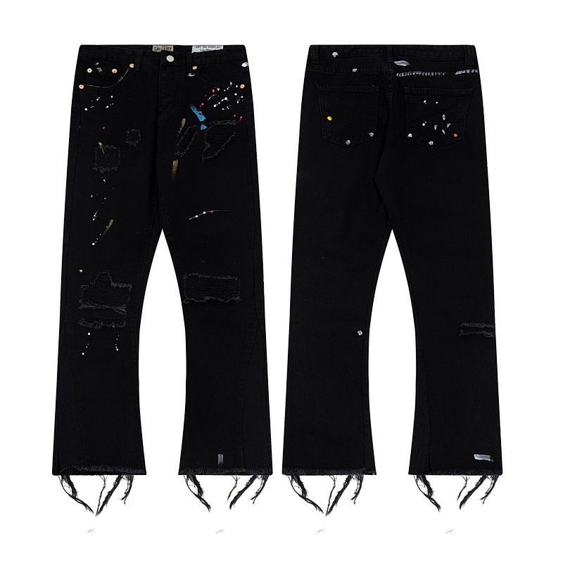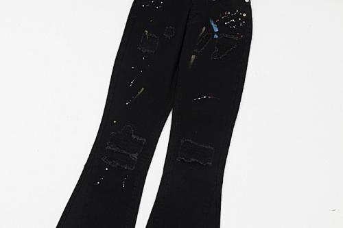 กางเกงยีนส์ลำลองทรงหลวมแบบปะติดปะต่อ ลายกราฟฟิตีแบบสาดสี ทรงไมโครเฟลร์ รุ่น GALLERY สำหรับผู้ชายและผู้หญิง