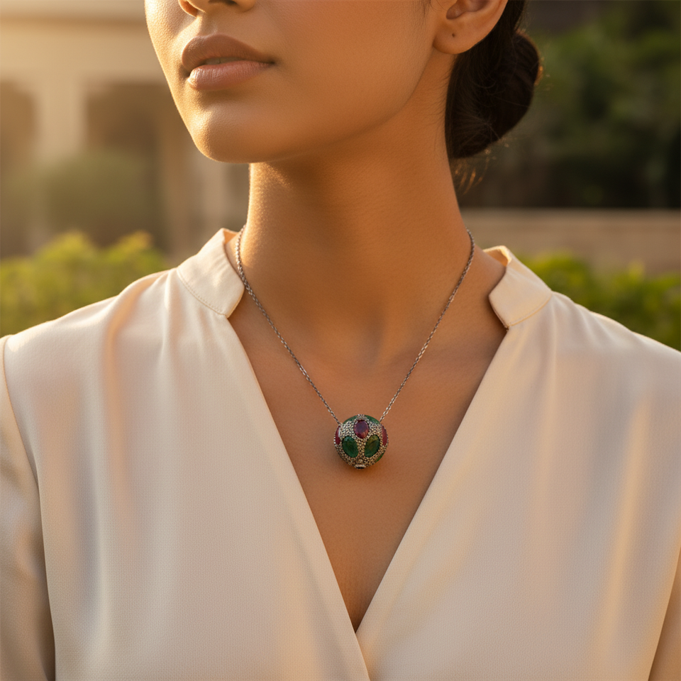จี้เพชรทรงเหลี่ยมมรกตและอเมทิสต์ ทอง 14k ประดับเพชร ชุบโรเดียม ประดับด้วยเพทาย