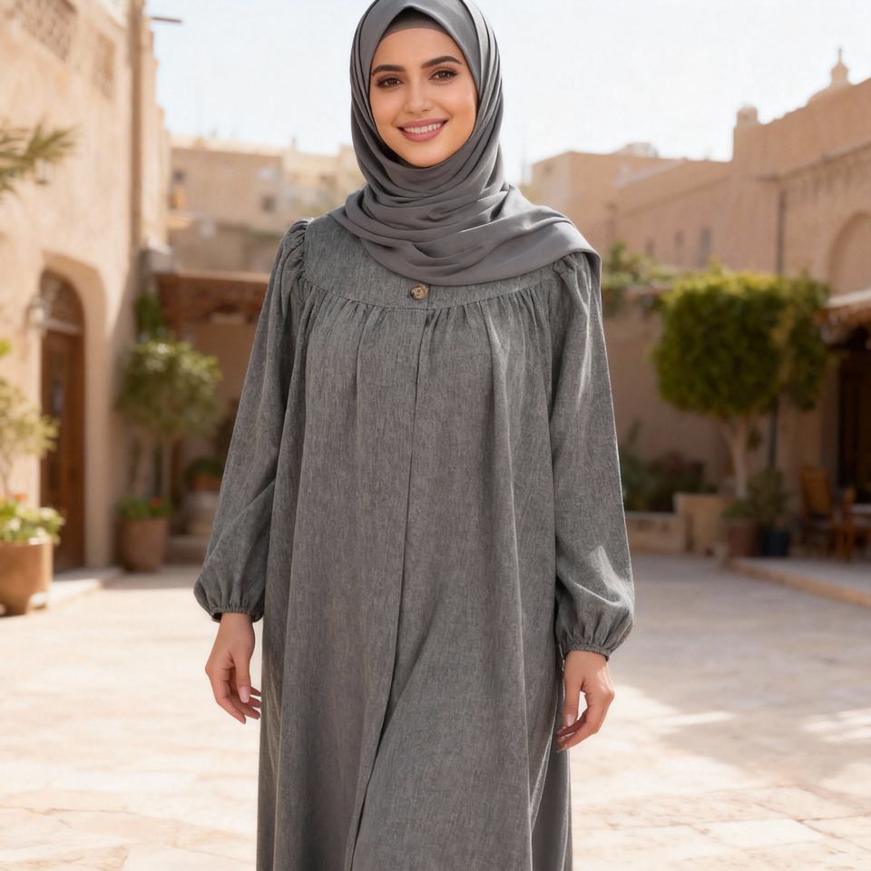 ชุดอาบายะห์สีพื้นแบบต่อผ้า สไตล์โมเดิร์นลำลองสำหรับผู้หญิงมุสลิม ผ้าคุณภาพสูง ดีไซน์ใหม่ทันสมัย
