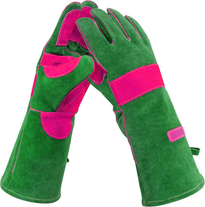 ถุงมือเชื่อมหนังวัวแยกขนาดได้ถุงมือนิรภัยสำหรับงานอุตสาหกรรมเคลือบยางกันไฟสำหรับงานหนักทดสอบการกระเด็นโลหะหลอมเหลว