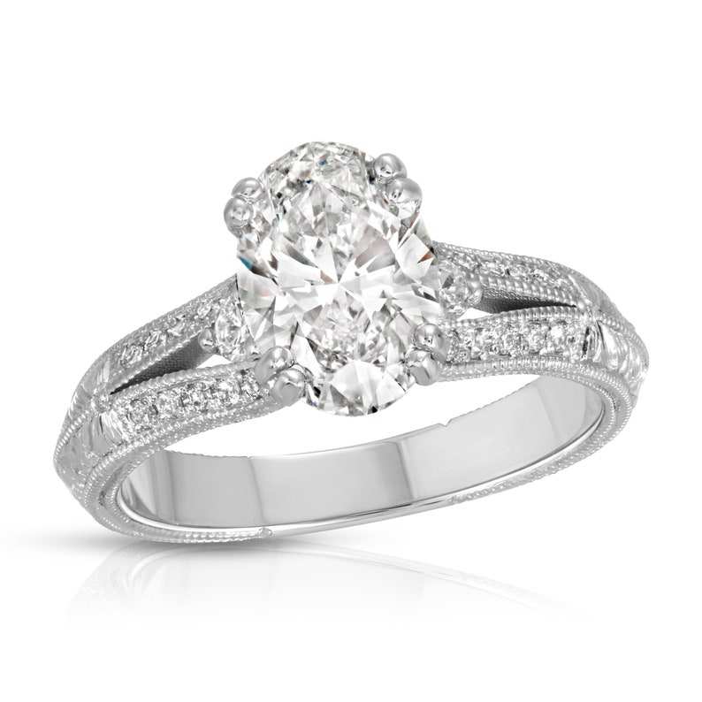 ก้านแยก925เงินสเตอร์ลิงตัดรูปไข่เพชรโมอิสซาไนต์แท้แหวนแต่งงานเครื่องประดับที่ดีของขวัญสำหรับคู่แต่งงาน