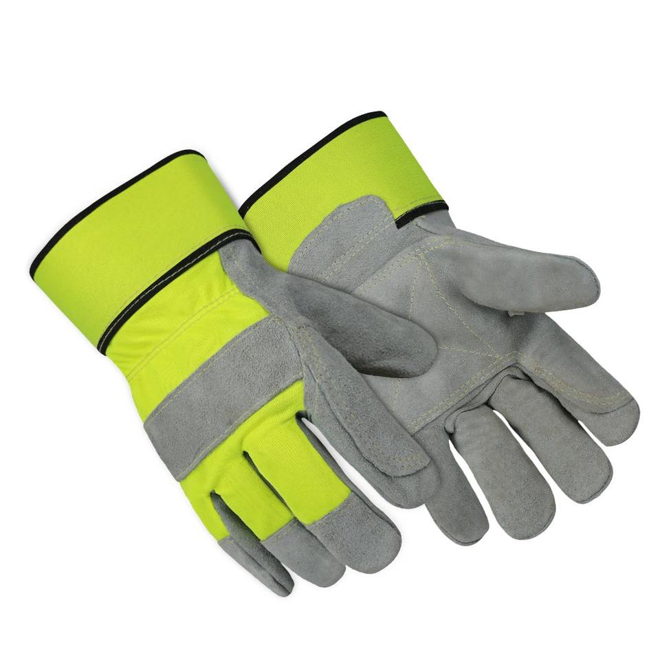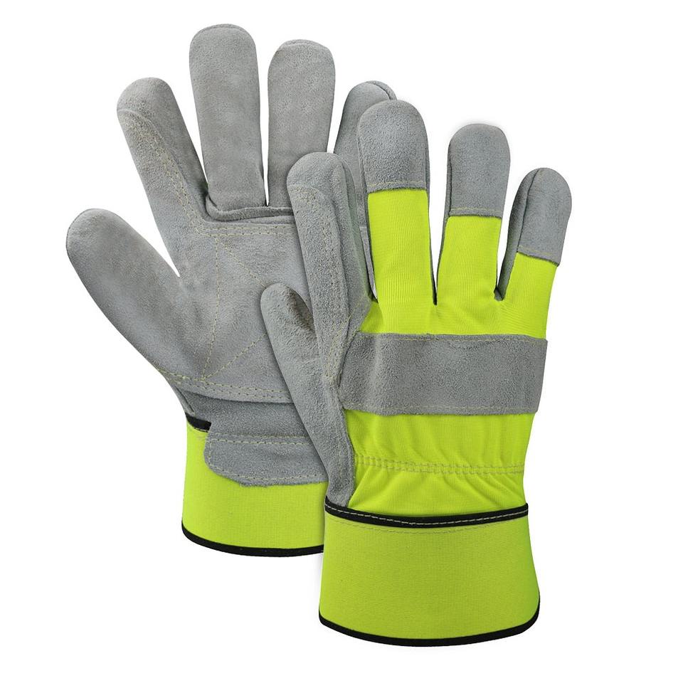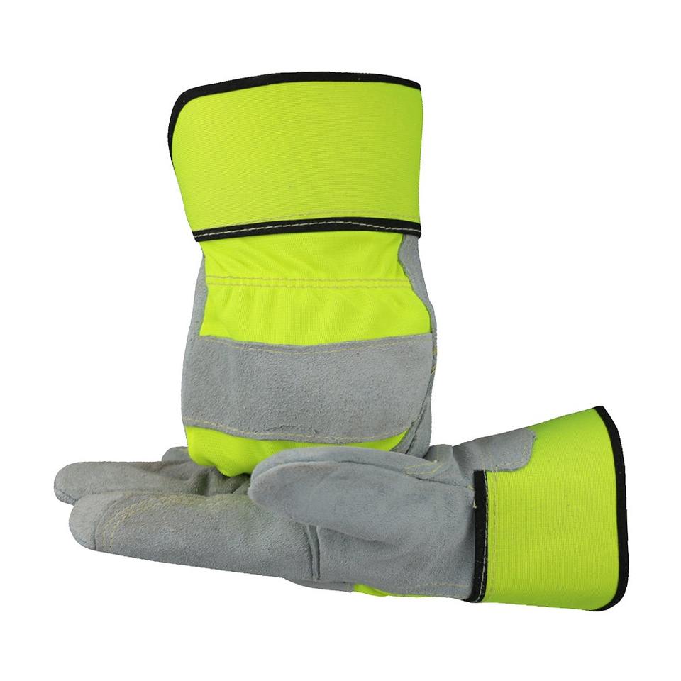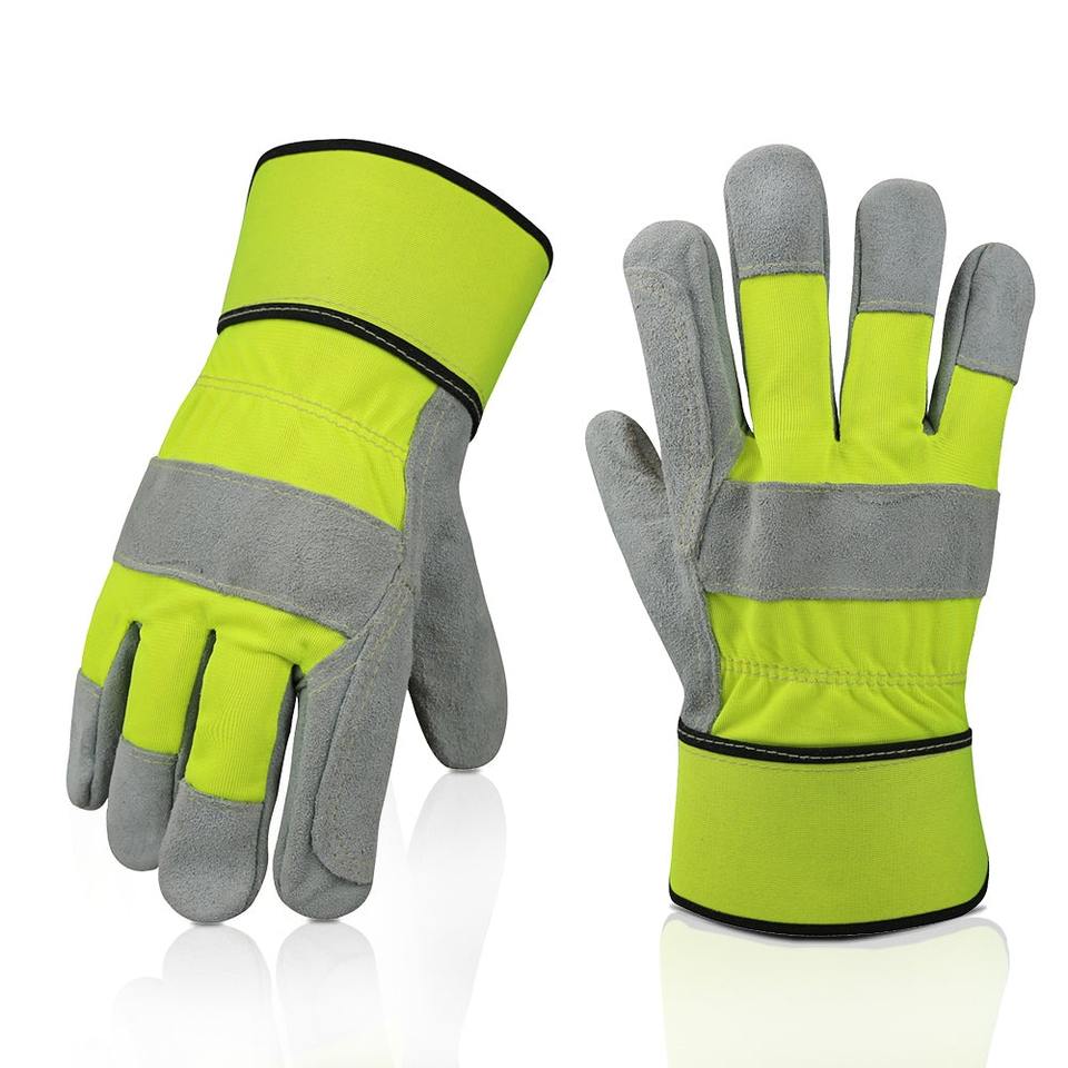 ถุงมือหนังวัวสองชั้นสำหรับทุกเพศถุงมือทำงานมีน้ำหนักเบาผ้าไนลอนสีเขียวแบบปรับแต่งได้
