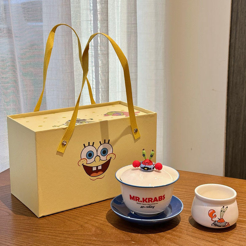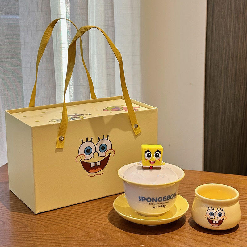 แก้วเซรามิกสปองจ์บ็อบพร้อมฝาปิดและที่กรองชาสำหรับชงชาส่วนตัว ของขวัญที่สมบูรณ์แบบสำหรับผู้ชายและผู้หญิง