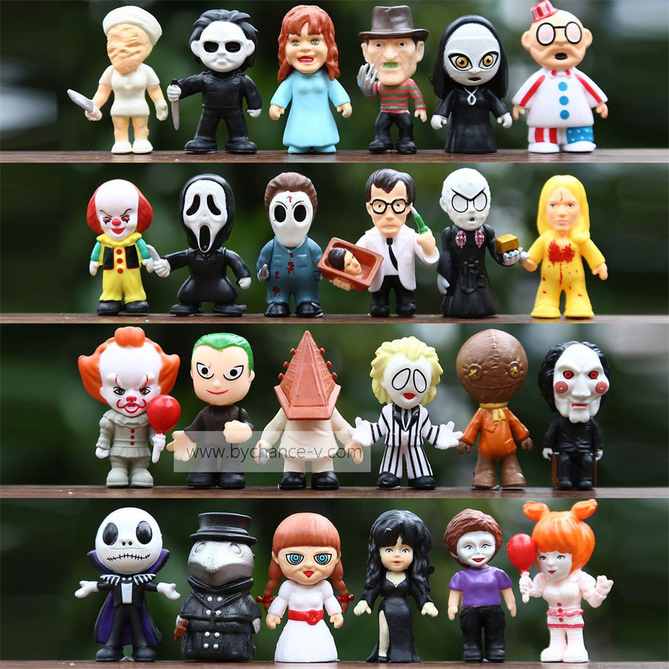 หุ่น PVC นักฆ่าหนังสยองขวัญน่ากลัวอุปกรณ์ปาร์ตี้ฮาโลวีนของเล่นสะสมสำหรับร้านขายของที่ระลึกและร้านค้าปลีก