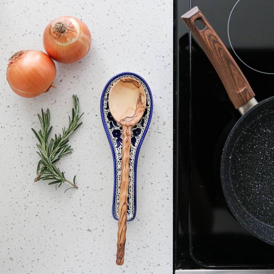 ช้อนสีดำควายฮอร์นโลหะผู้ถือห้องครัวสำหรับ spatulas ช้อนแหนบเพิ่มเติม