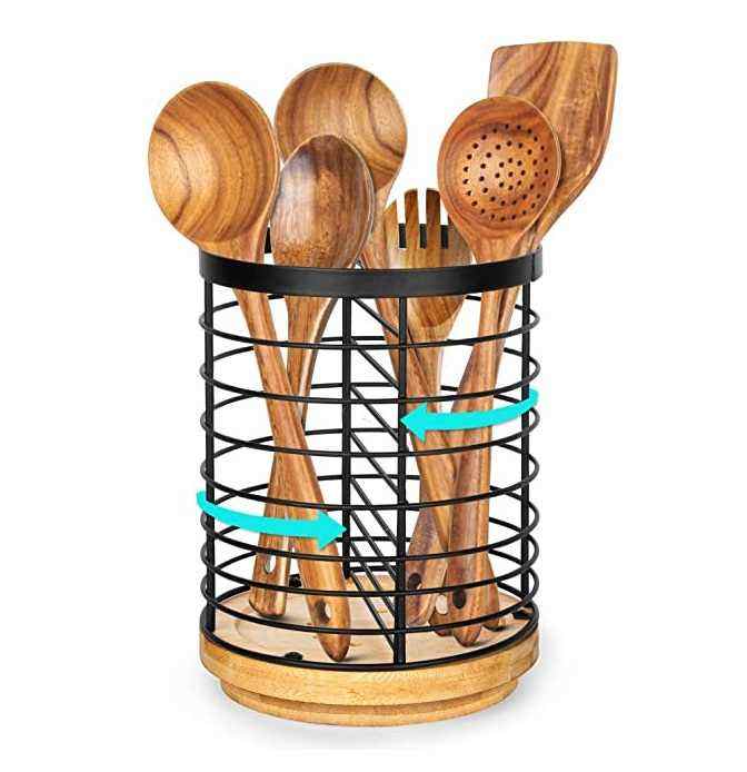 ขาตั้งช้อนสำหรับห้องครัวที่วางช้อนส้อมสำหรับโต๊ะรับประทานอาหารที่วางช้อนไม้ช้อนส้อมยืน (สีน้ำตาลทอง) ขายส่งทำในประเทศอินเดีย
