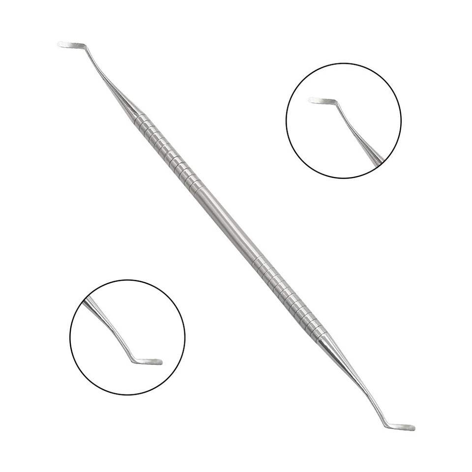 ที่ดันหนังกำพร้าสแตนเลสแบบปลายช้อน พร้อมหัวตัดแต่งเล็บสองด้าน สำหรับทำเล็บมือ สีเงิน