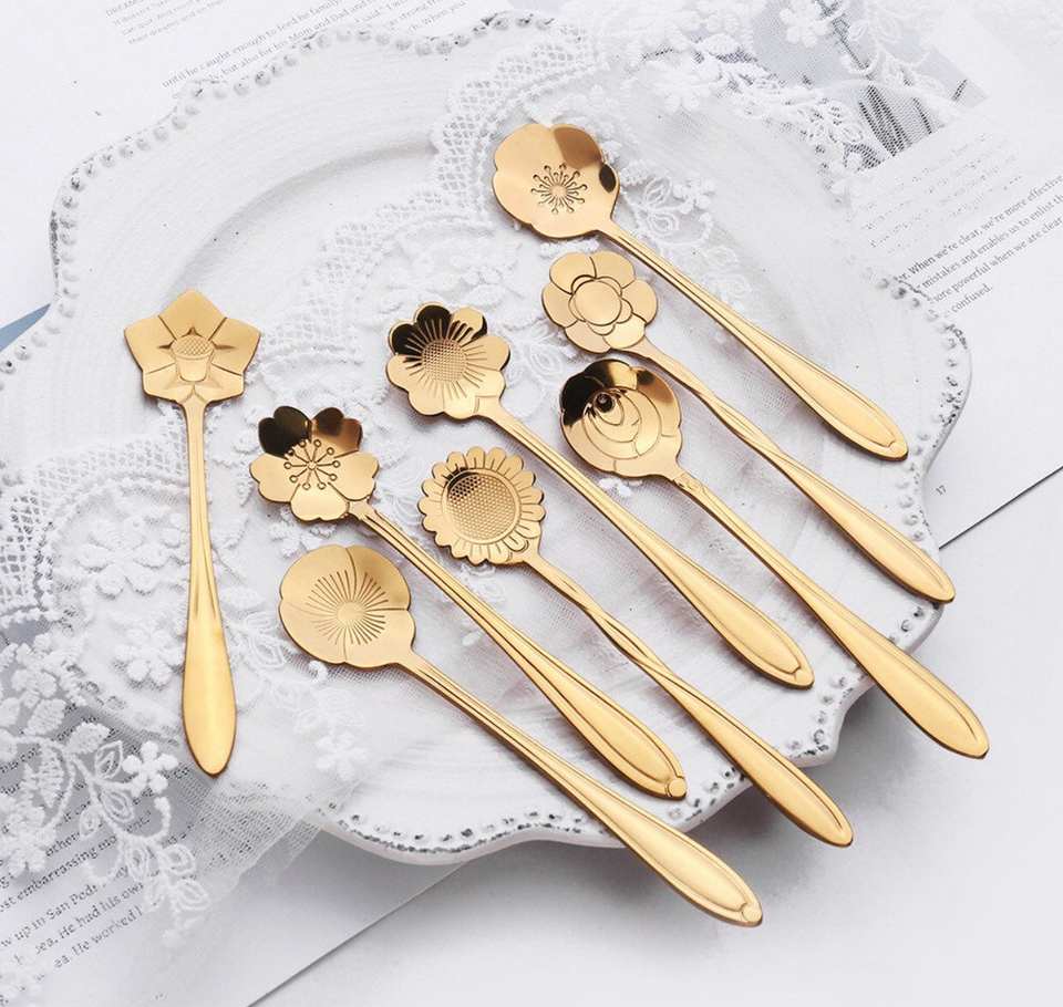 ช้อนเครื่องใช้บนโต๊ะอาหารทองเหลืองสำหรับงานแต่งงานเครื่องใช้บนโต๊ะอาหารดีไซน์รูปสับปะรดด้ามจับสีทอง