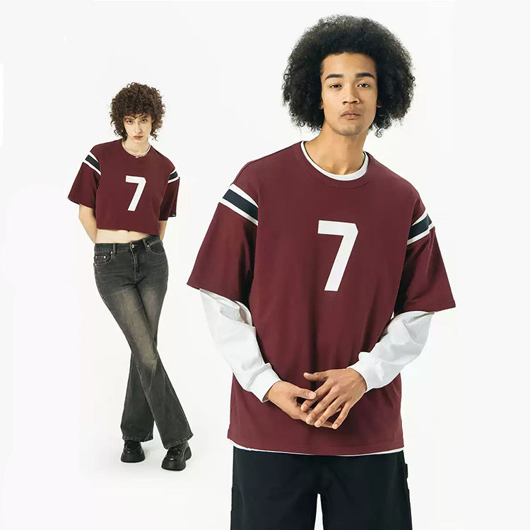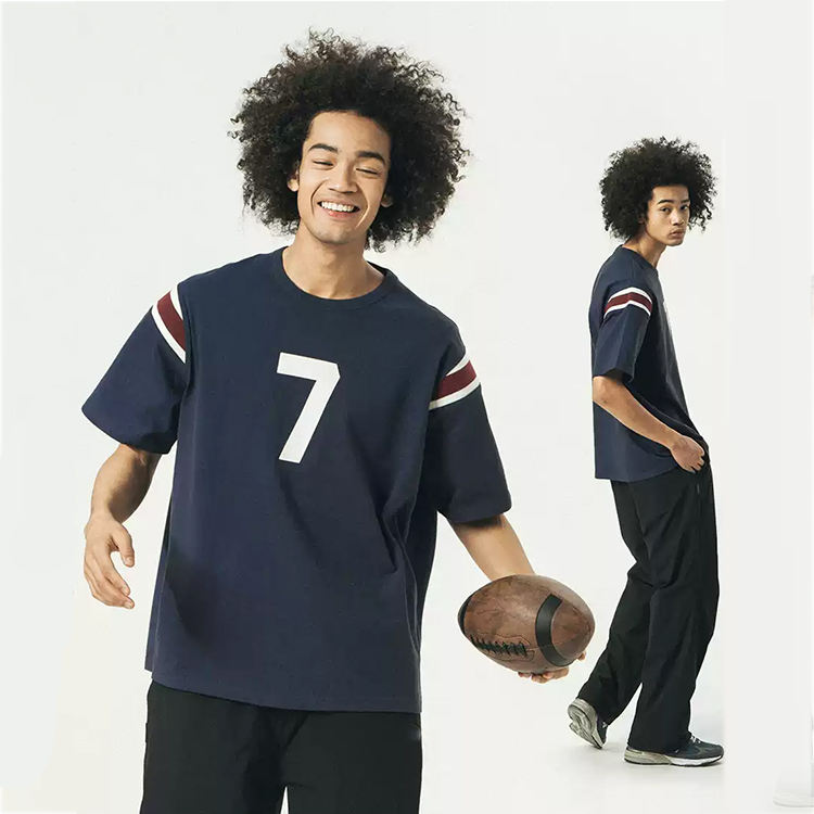 เสื้อยืดกีฬาฟุตบอล แขนสั้นทรงโอเวอร์ไซส์ ลายตัวอักษร ผ้าถัก ระบายอากาศดี คอกลม น้ำหนัก 180 กรัม โลโก้ด้านหน้า ผ้าฝ้าย 95% ผสมอีลาสเทน 5%