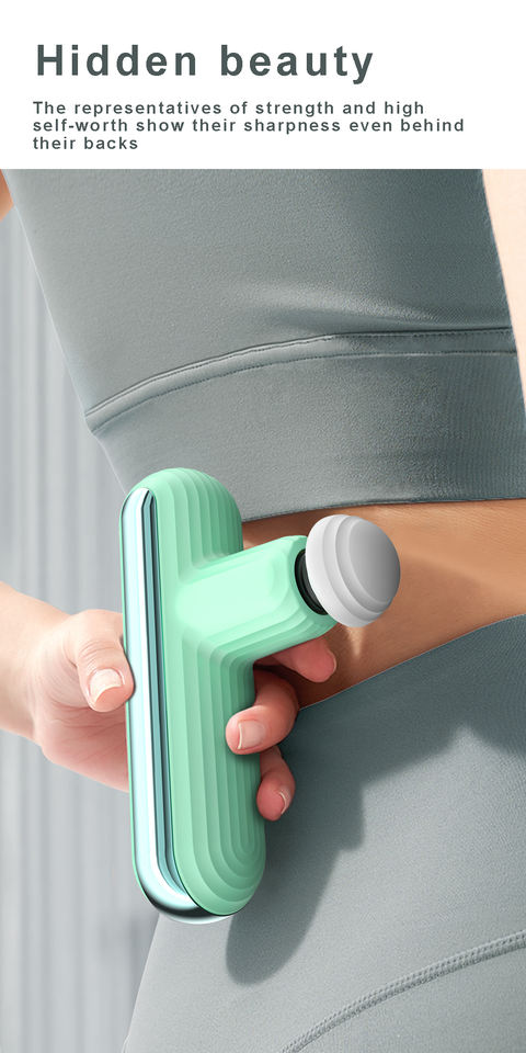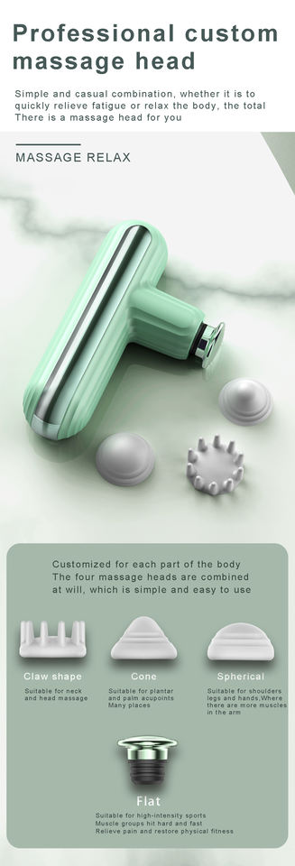 ปืนนวดมอเตอร์ไร้แปรงถ่านขนาดเล็กกระเป๋าซิลิโคนสีชมพูเขียวเทา4หัวสำหรับหัวและคอสินค้าขายดี