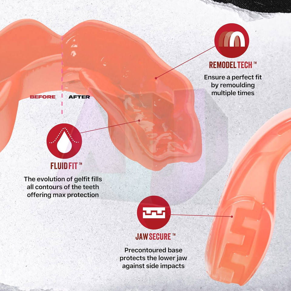 อุปกรณ์ป้องกันฟันแบบปรับได้ ผลิตจากวัสดุ EVA คุณภาพสูง ปลอดภัยต่อสิ่งแวดล้อม เหมาะสำหรับกีฬาหลากหลายประเภท ทั้งชายและหญิง