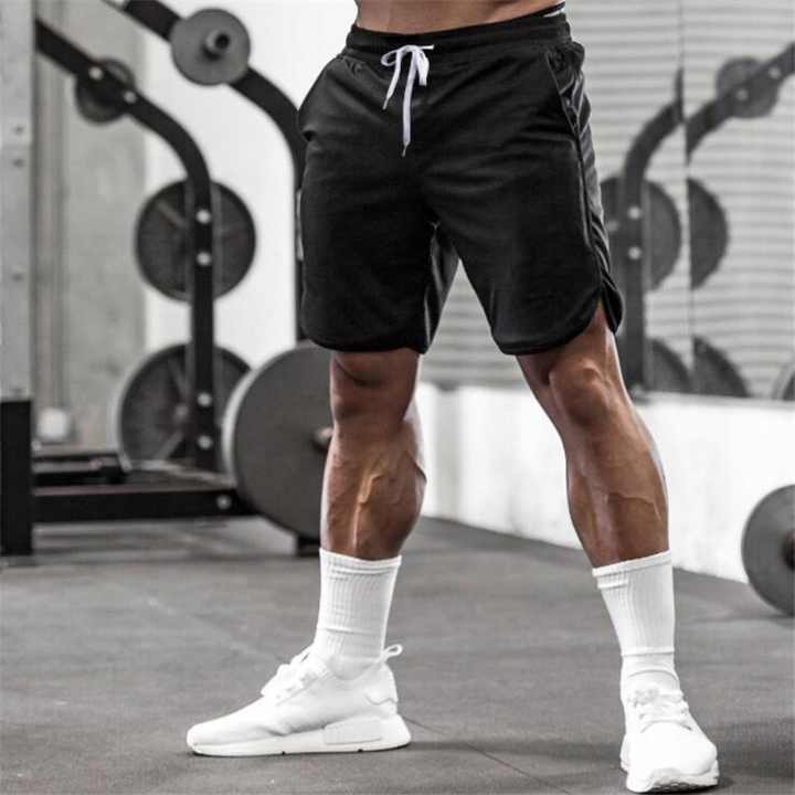 กางเกงกีฬาขาสั้นผ้าตาข่ายแห้งเร็วผ้าโพลีเอสเตอร์สำหรับผู้ชายเสื้อผ้าออกกำลังกายแบบลำลองใส่วิ่งเข้ายิมวิ่ง