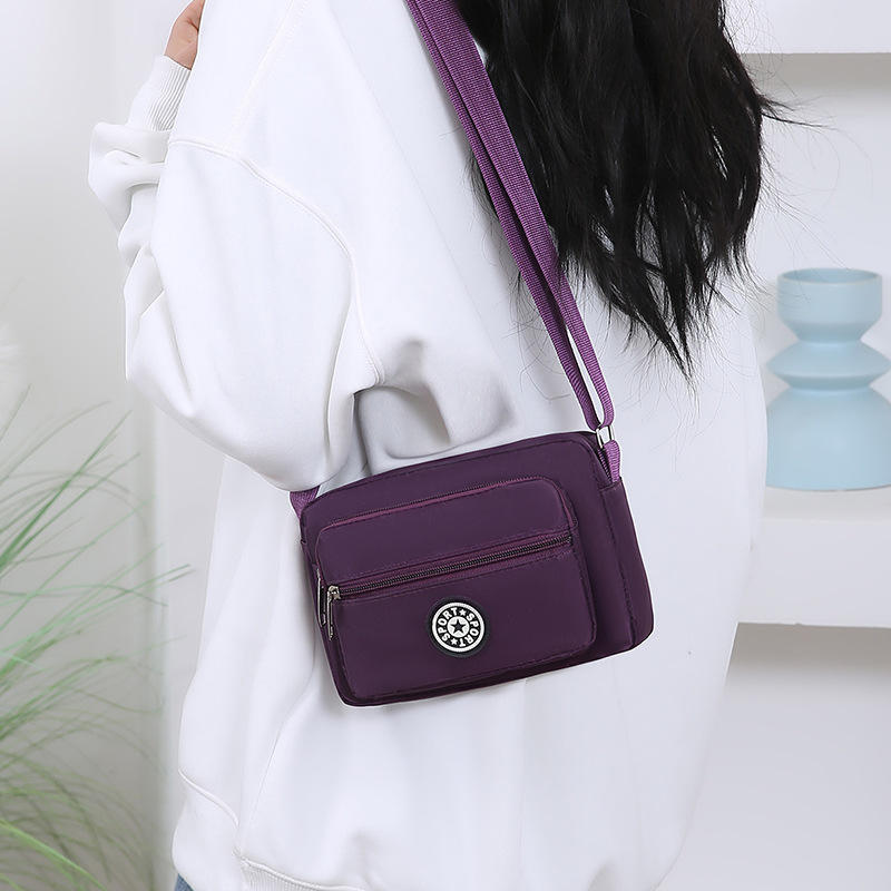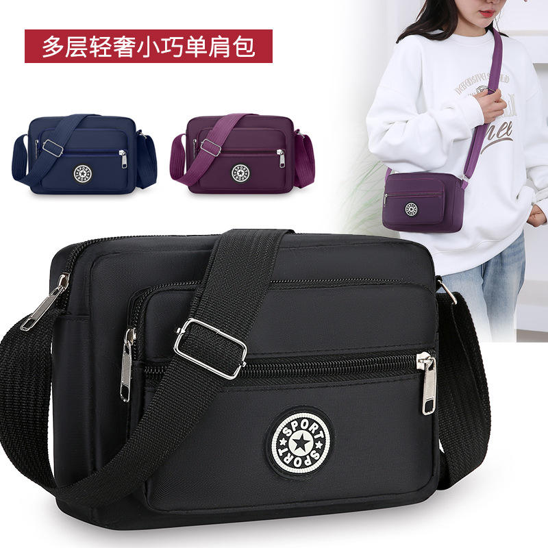 กระเป๋าสะพายข้างสตรีสปอร์ตสตาร์สีน้ำเงินเข้มทรงสี่เหลี่ยมแนวนอนหลายช่องซิปปิดแบบพกพาใช้ได้ทุกวัน