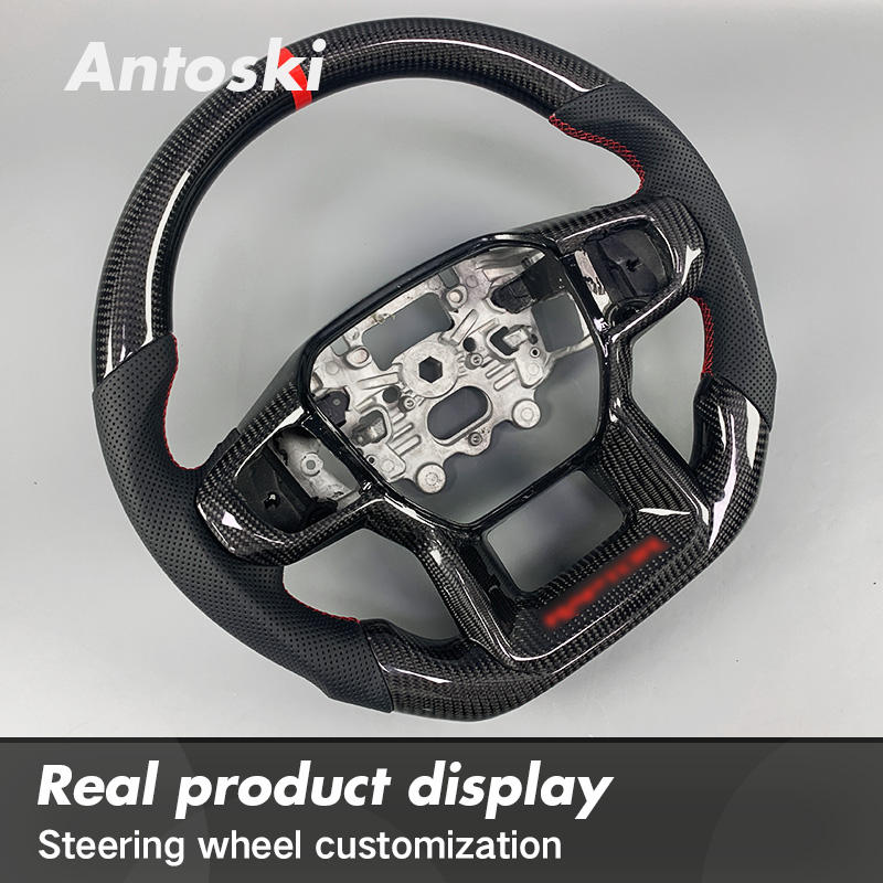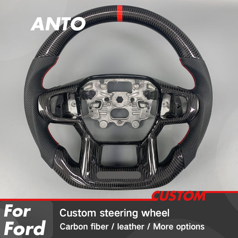 พวงมาลัยหนังแท้สีดำคาร์บอนไฟเบอร์แบบสปอร์ตสไตล์ สำหรับฟอร์ด เรนเจอร์ แร็พเตอร์ ปี 2022 2023 2024 2025 อัพเกรดภายในรถยนต์