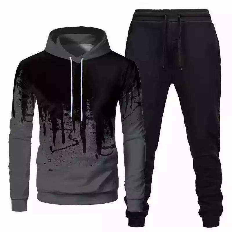 ชุดวอร์มเทคฟลีซโพลีเอสเตอร์แบบซิปเต็มตัว เสื้อฮู้ดดี้และกางเกงจ็อกเกอร์ ชุดออกกำลังกายสองชิ้นสำหรับผู้ชาย