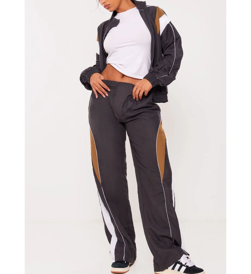 ชุดวอร์มกันลมผู้หญิงแบบ 2 ชิ้น สกรีนโลโก้และสีได้ ผลิตจากไนลอน 100% คุณภาพดีที่สุด ชุดวอร์มกันลมแบบ OEM สำหรับผู้หญิง