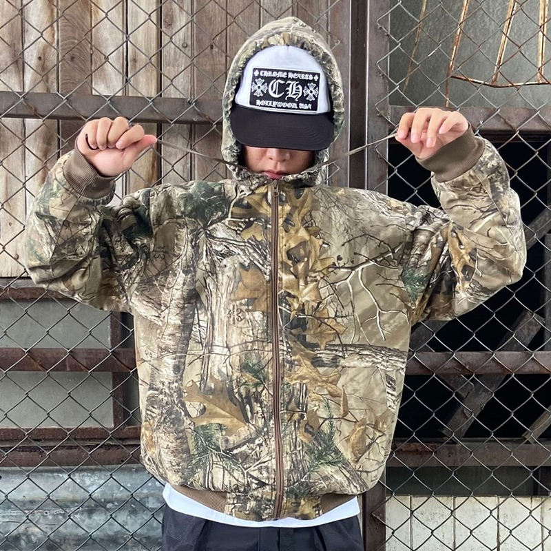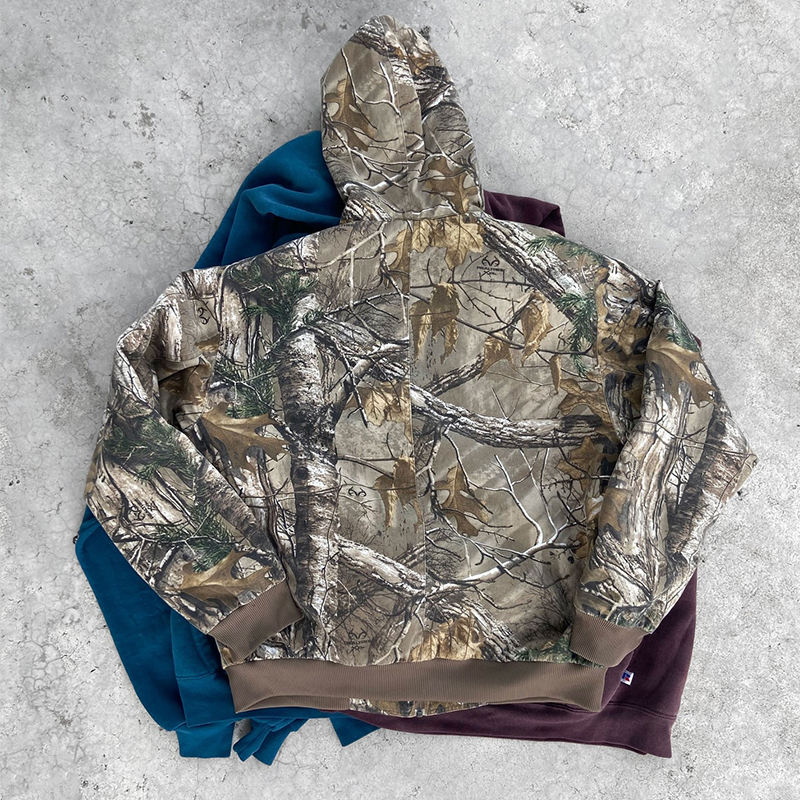 เสื้อฮู้ดดี้ลายพรางใบเมเปิลแบบซิป Sportish Impex สำหรับผู้ชาย ผ้าคอตตอนหนา พิมพ์ลายแบบซับลิเมชั่น ทรงครอป ลาย Real Tree