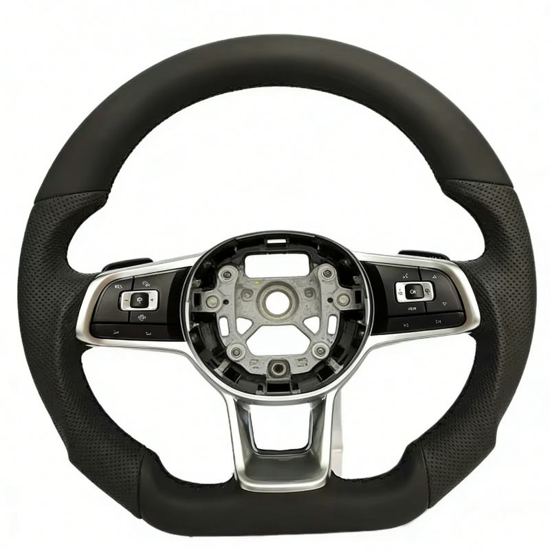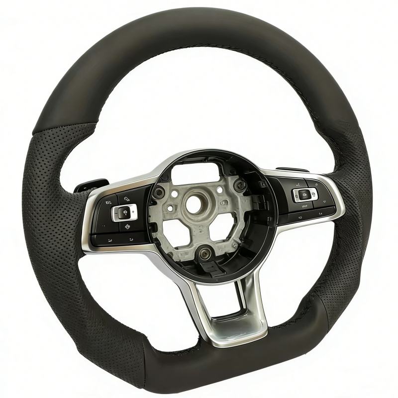 พวงมาลัยหนังสีดำสำหรับรถยนต์ VW Golf Jetta Passat Polo Sedan Touareg GTE MK6 B6