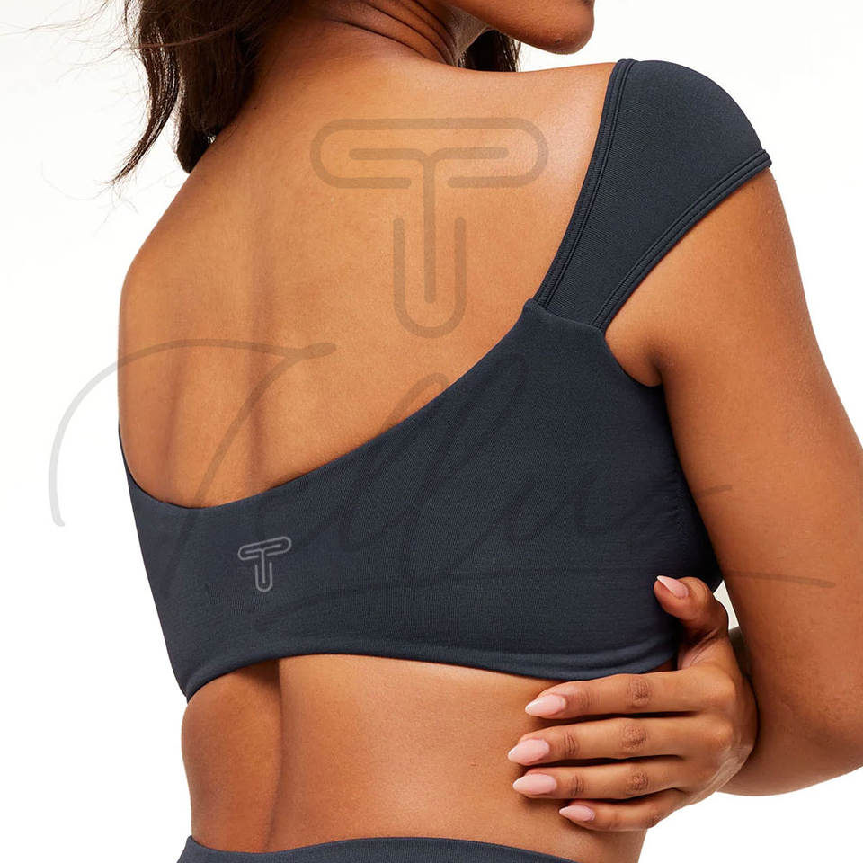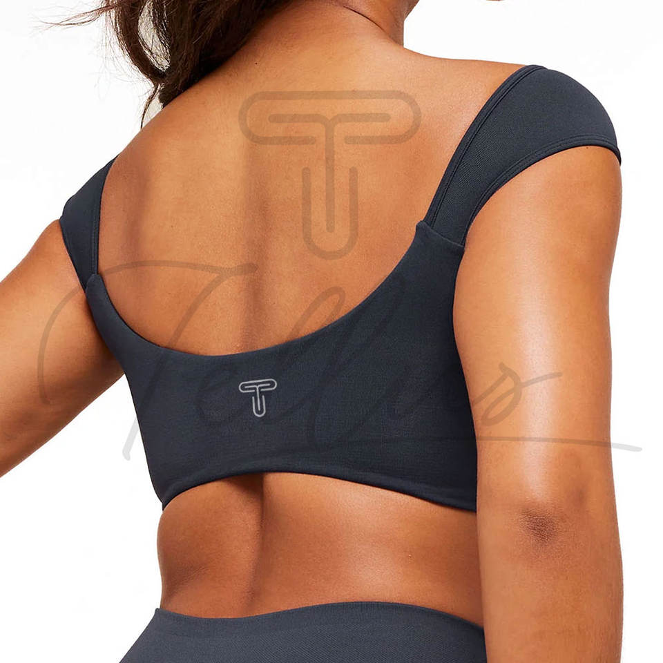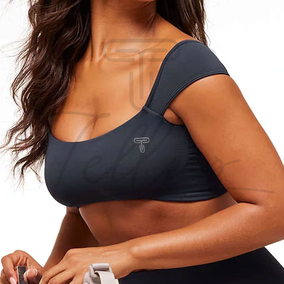 สปอร์ตบราสำหรับผู้หญิง แบบไร้ตะเข็บ น้ำหนักเบา ระบายอากาศได้ดี รองรับการออกกำลังกาย โยคะ และฟิตเนส พร้อมโลโก้ด้านหน้า ยืดได้สี่ทิศทาง