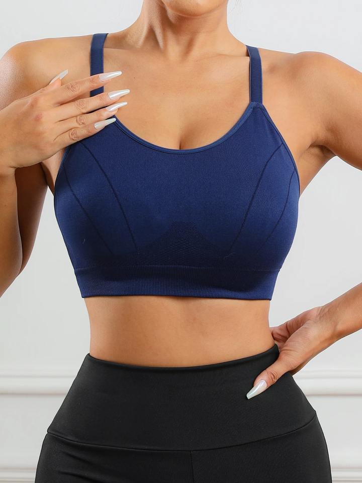 สปอร์ตบราปรับไหล่ได้สายรัดไหล่ของผู้หญิงสีทึบเสื้อออกกำลังกายฟิตเนสออกกำลังกายระบายอากาศได้แบบสายรัดหลังกลวงสไตล์เรียบง่าย