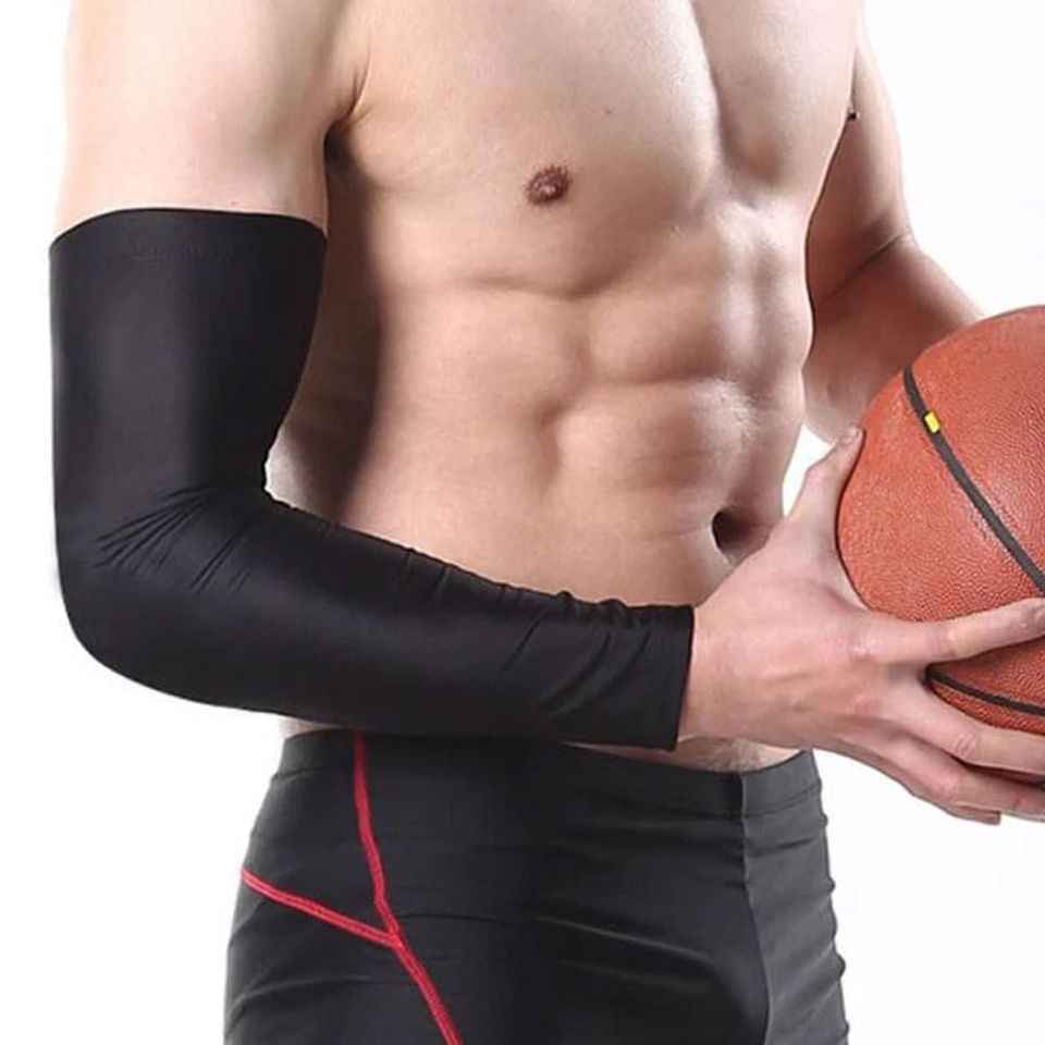 ปลอกแขนกีฬาแบบรัดกระชับ ผ้าพันแขนยืดหยุ่นสำหรับบาสเกตบอลและการฝึกซ้อม รับสกรีนโลโก้