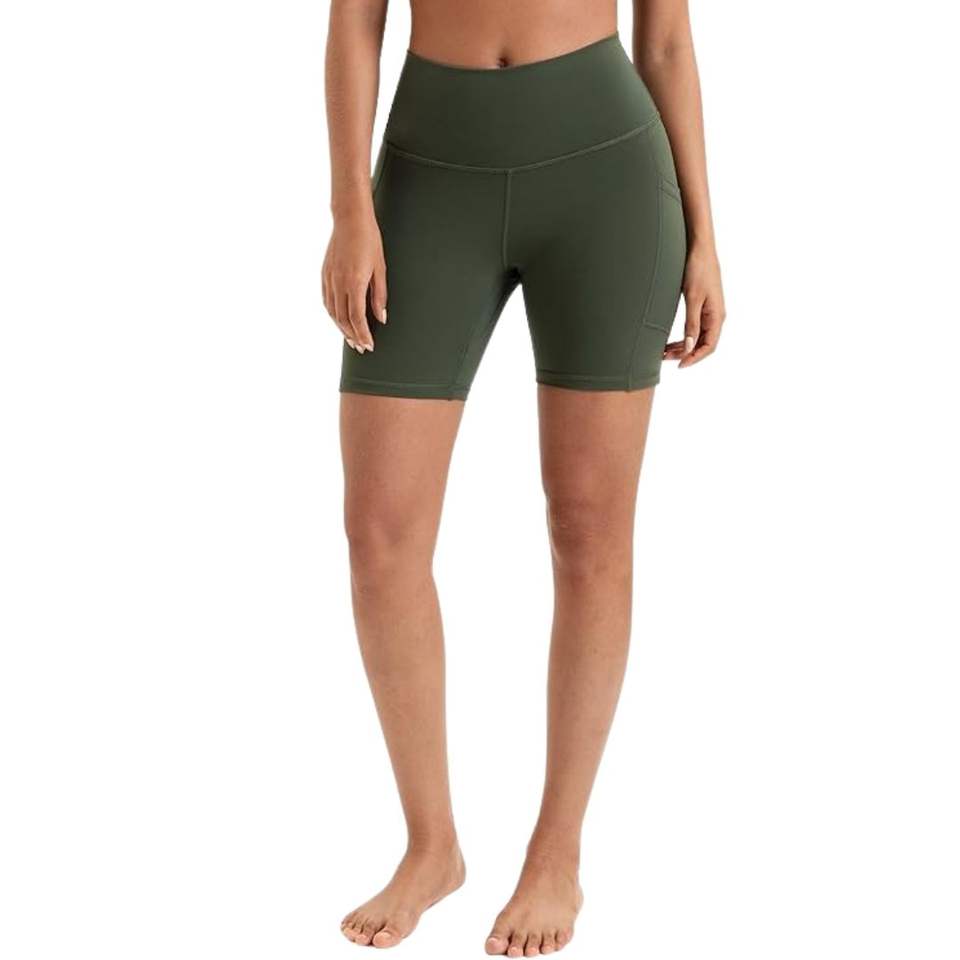 กางเกงขาสั้นรัดรูปสำหรับออกกำลังกายรัดรูปสำหรับผู้หญิงผ้าสแปนเด็กซ์ระบายอากาศลายสีเข้มสูงขนาดกลาง