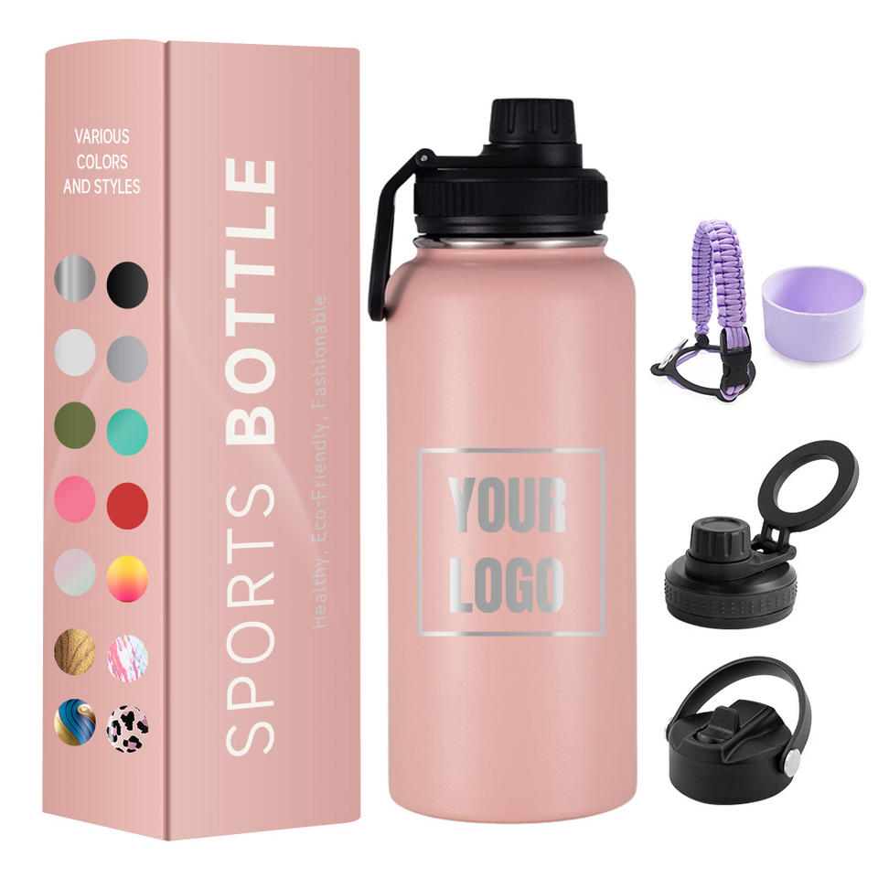 ขวดน้ำดื่มแนวสปอร์ตปากกว้าง32ออนซ์พร้อมด้ามจับทำจากโลหะเป็นมิตรต่อสิ่งแวดล้อมสำหรับเดินทาง