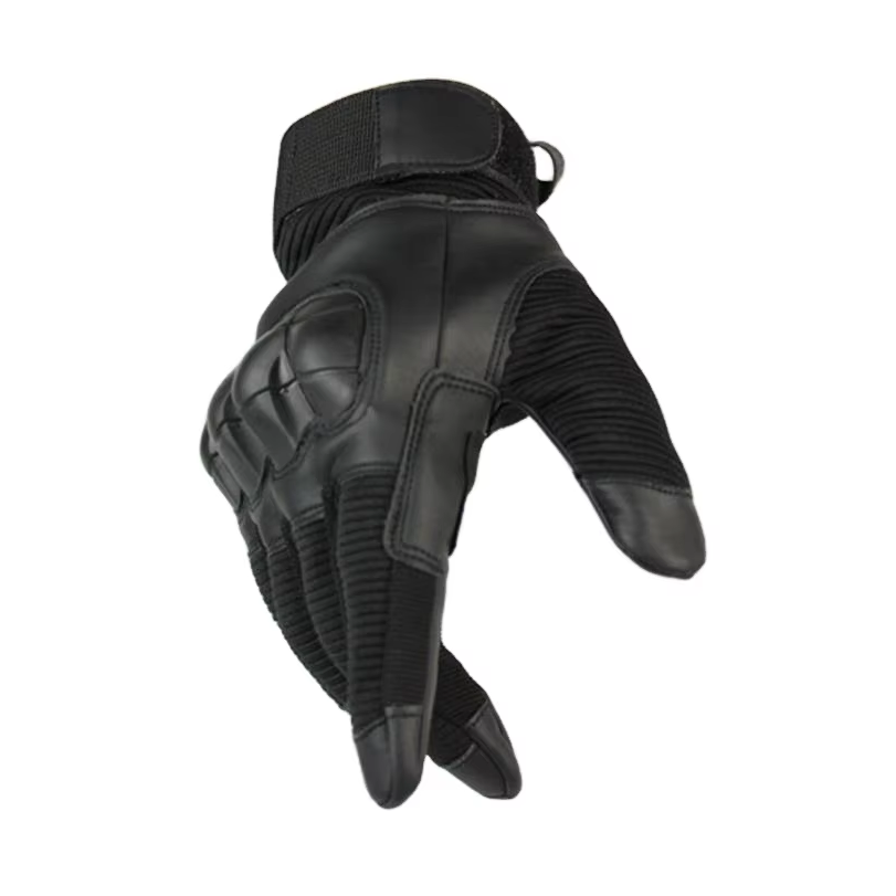 ถุงมือขี่มอเตอร์ไซค์แบบเต็มนิ้ว ป้องกันฝ่ามือด้วยหนัง ป้องกันข้อนิ้วด้วยยาง พร้อมแถบตีนตุ๊กแก