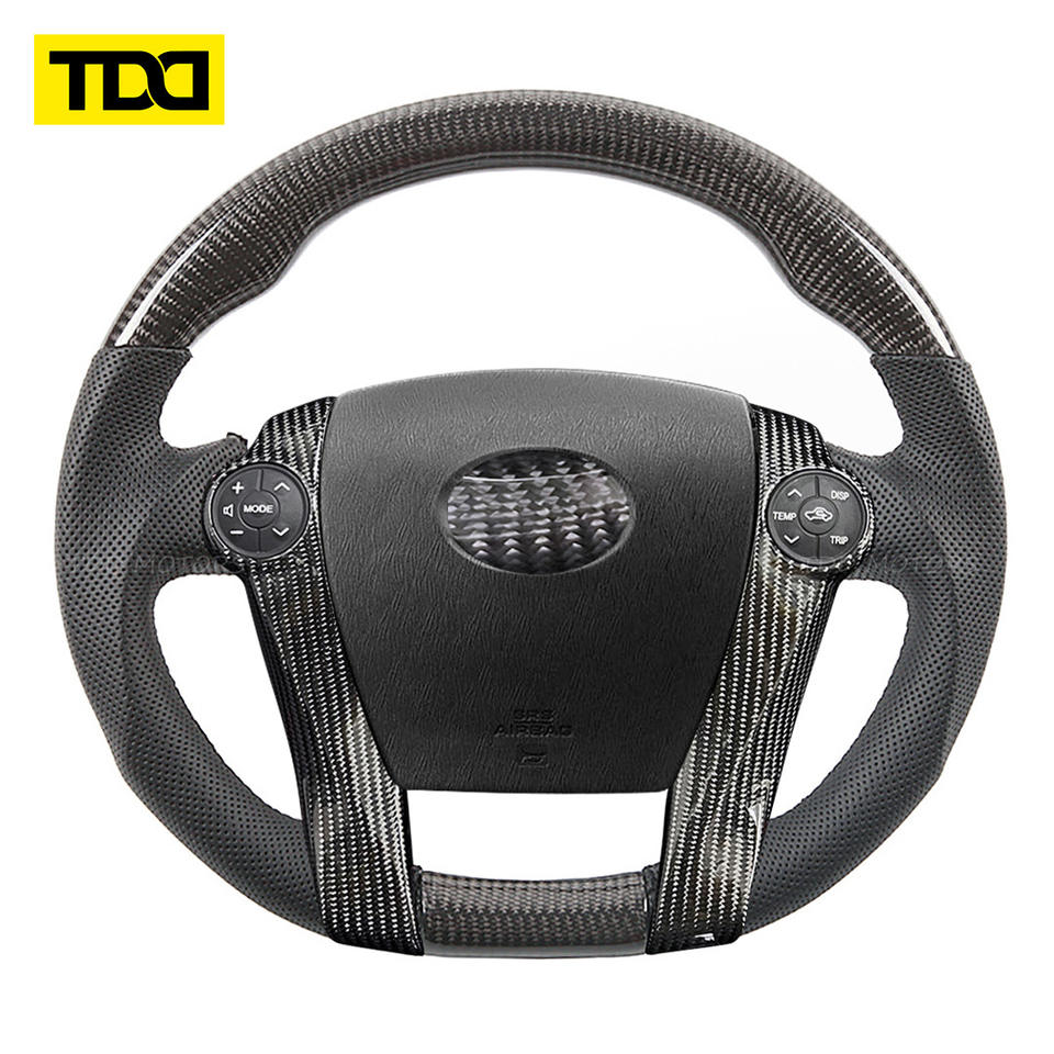พวงมาลัยคาร์บอนไฟเบอร์สไตล์สปอร์ตหรูหราสำหรับวัสดุหนัง Toyota Prius และ Corolla ที่มีสีแดงตะเข็บ