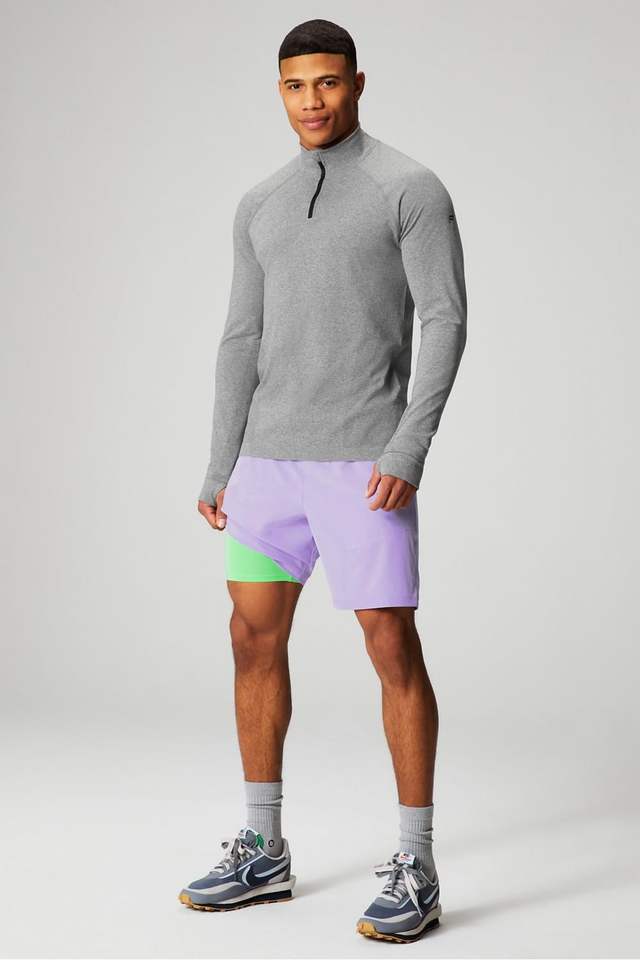 กางเกงขาสั้นกีฬาผู้ชายแบบ2 in 1แห้งเร็วทนทานพร้อมกระเป๋ารัดด้านในและดีไซน์น้ำหนักเบา