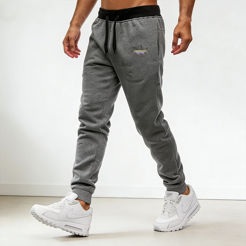 กางเกงกีฬาพิมพ์ลายเค้ก ฤดูใบไม้ผลิ/ฤดูร้อน/ฤดูใบไม้ร่วง กางเกงจ็อกกิ้งลำลอง กางเกงออกกำลังกายผู้ชาย สีมัตต์ พร้อมเข็มขัดสีดำ