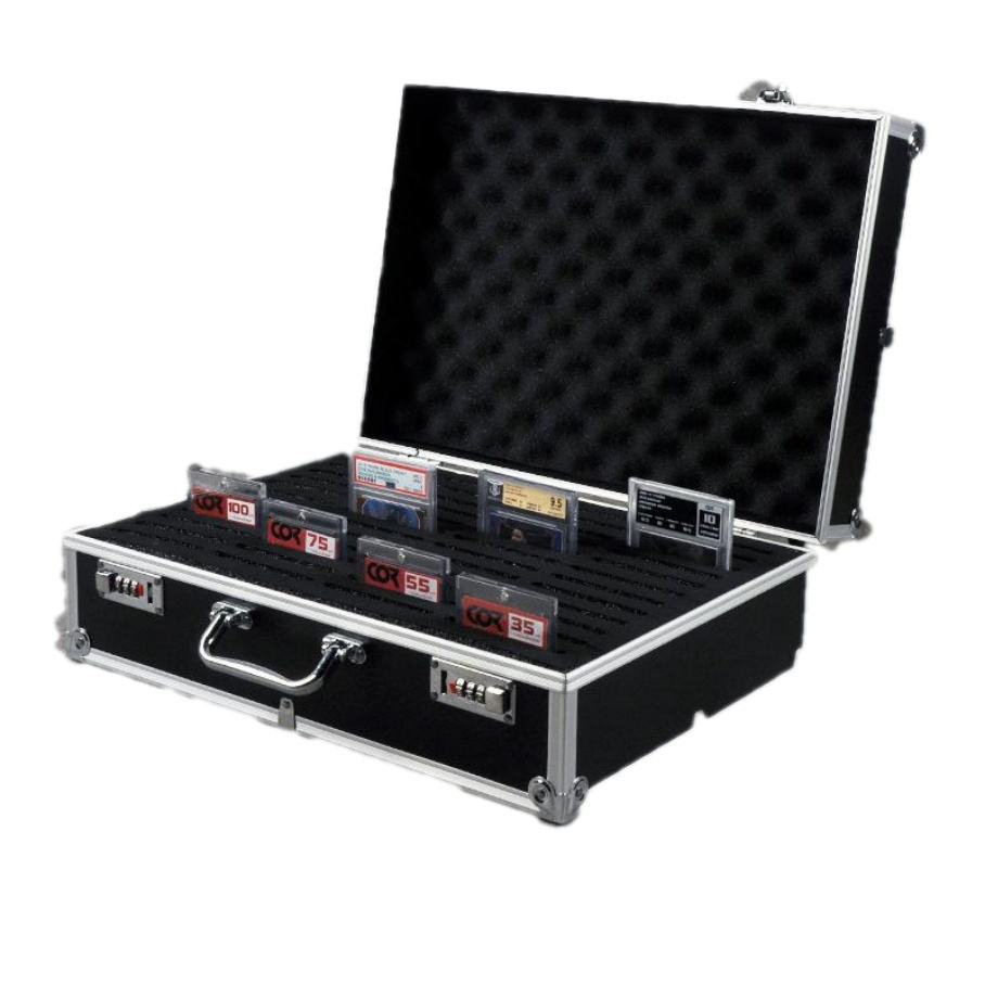 Sports Slab Card Case with Aluminum Frame Button Closure 3 Rows for Graded Card Storage Made of Leather Plastic PU for PSAS/BGS
