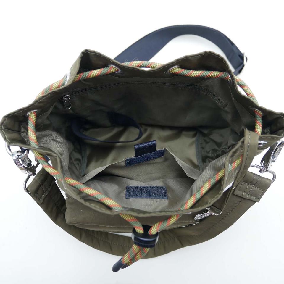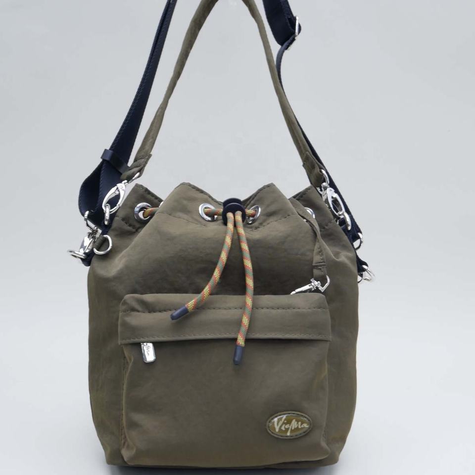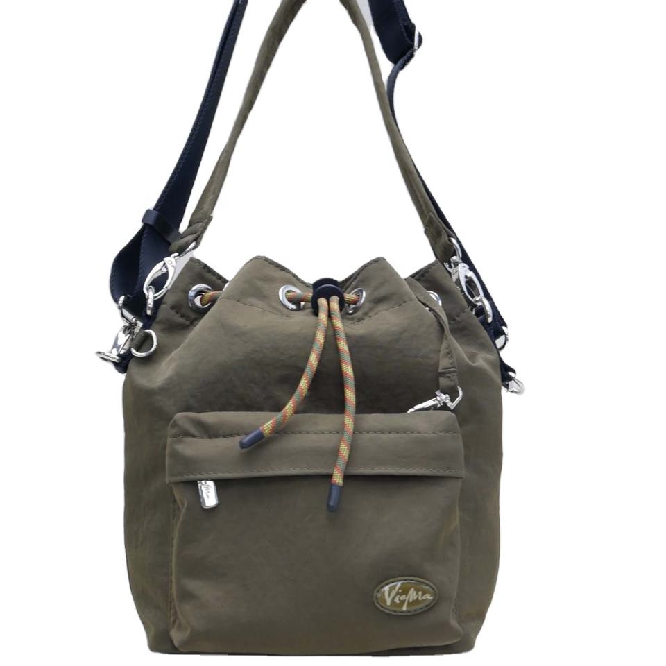 กระเป๋าไนลอนสะพายไหล่ยาวสไตล์สปอร์ตกระเป๋าด้านหน้าทรงถังสีเขียวกระเป๋ากลางแจ้งใช้ได้ทั้งชายและหญิง