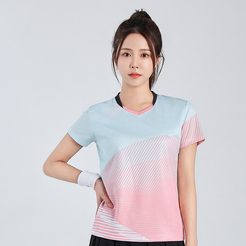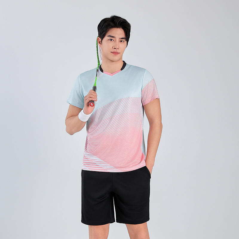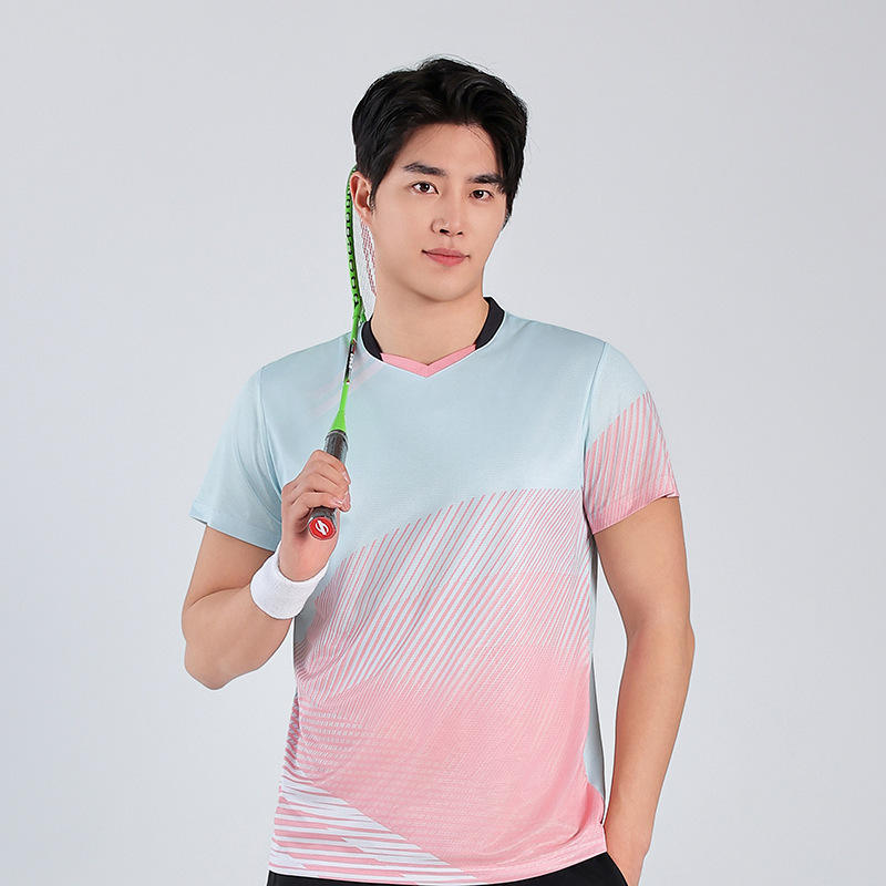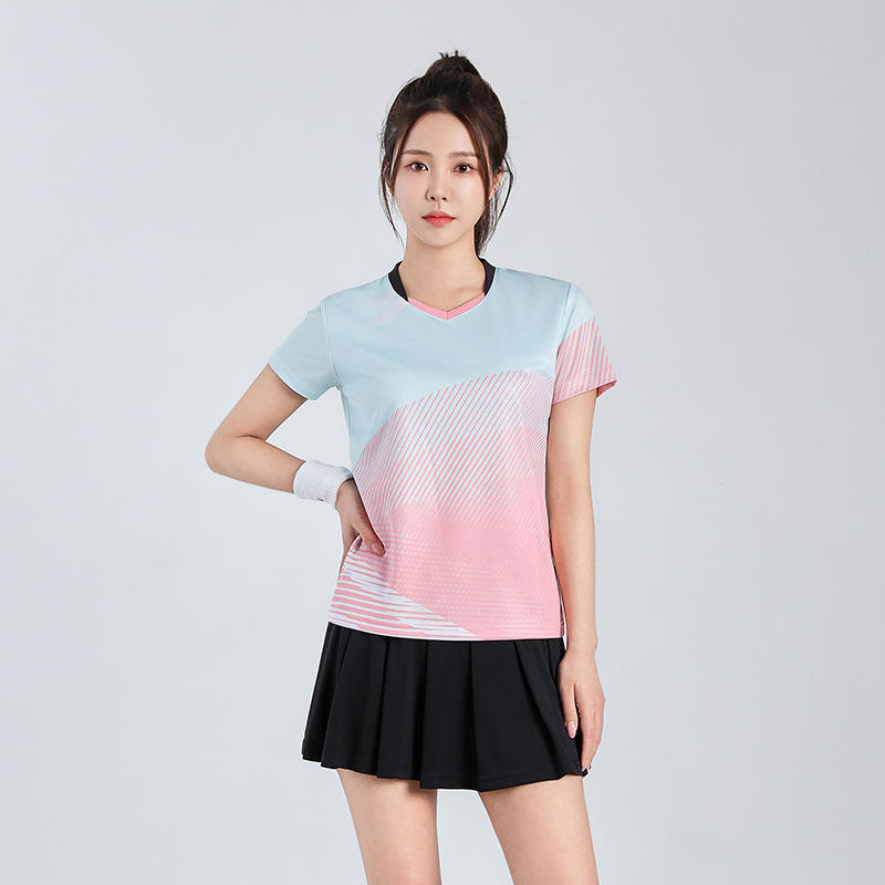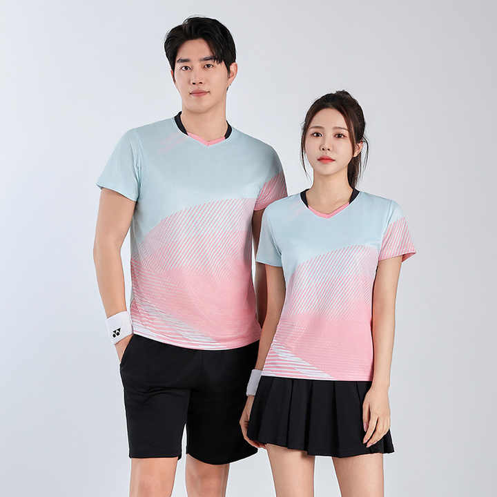 ชุดกีฬาระบายอากาศได้ดีทำจากโพลีเอสเตอร์สำหรับทั้งชายและหญิงชุดเล่นกีฬาเทนนิสแบดมินตันพิมพ์ลายตามสั่งไซส์พิเศษตัวเลือก