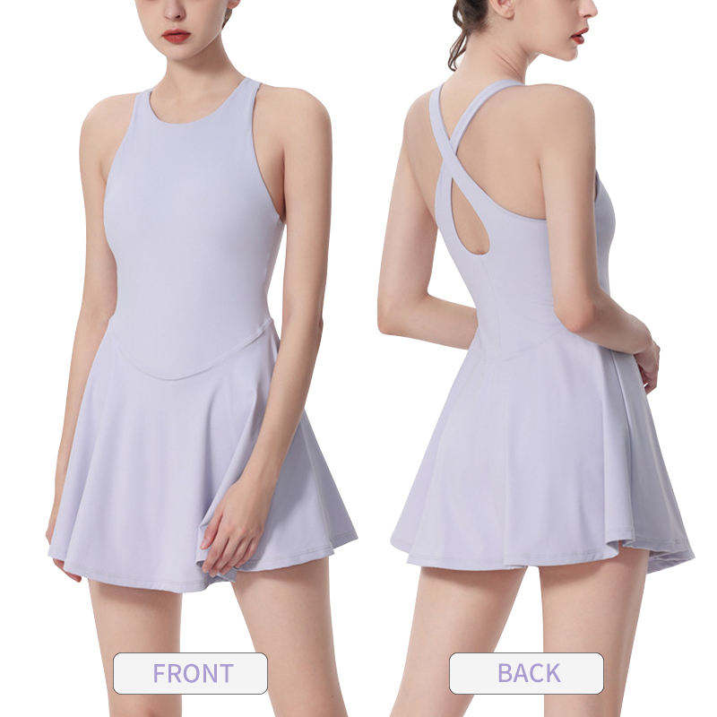 Sports Tennis Dress Beautiful Cross Back One-piece Yoga Bodysuit Dress High Intensity Fitness Yoga Jumpsuit Gym Wear No reviews