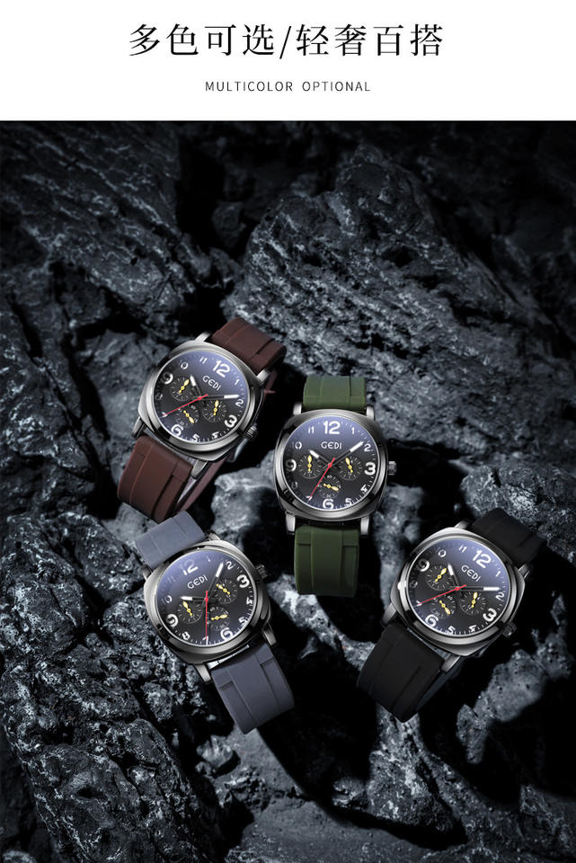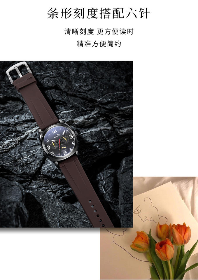 นาฬิกาข้อมือควอตซ์ซิลิโคนกันน้ำมีหกเข็มสไตล์สปอร์ตข้อเสนอพิเศษสำหรับวันหยุด