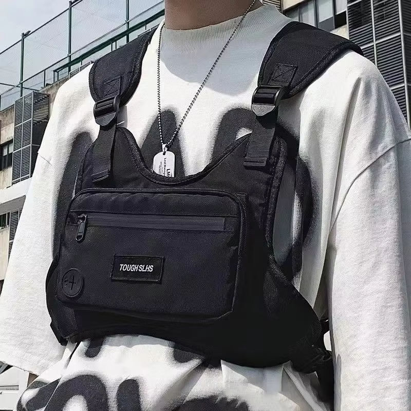 เสื้อกั๊กอเนกประสงค์กันน้ำสำหรับเล่นกีฬากลางแจ้ง กระเป๋าคาดเอวแบบยุทธวิธี สไตล์ฮิปฮอป เท่ห์ กระเป๋าคาดอกแบบพกพา