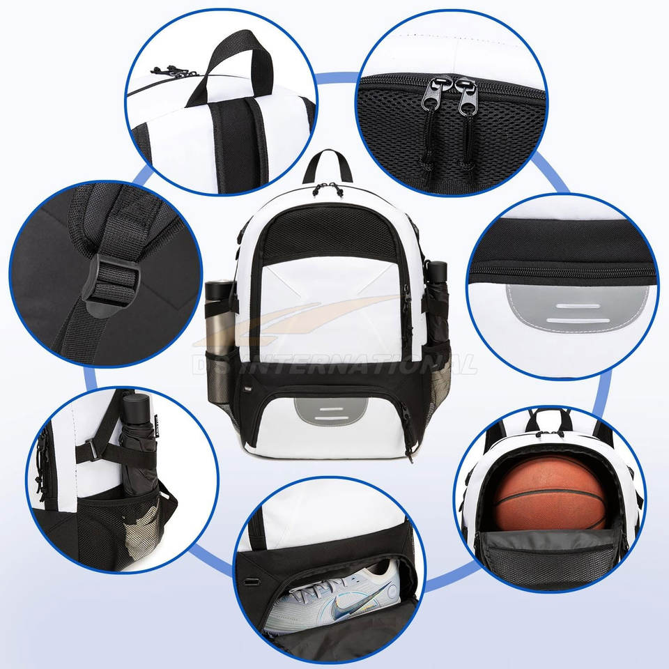 กระเป๋ากีฬาใส่บาสเก็ตบอลกระเป๋าเป้สะพายหลังสำหรับกีฬาทุกประเภทมีช่องใส่รองเท้าและกระเป๋าใส่ขวด