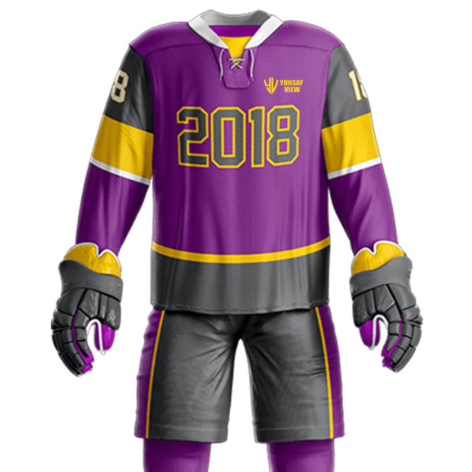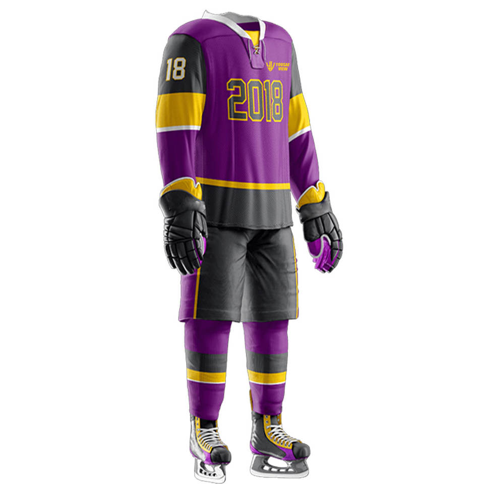 เครื่องแบบกีฬาฮอกกี้น้ำแข็งสำหรับผู้ชายชุดฝึกฮ็อกกี้น้ำแข็งสำหรับฝึกซ้อมโลโก้และขนาดออกแบบได้ตามต้องการ